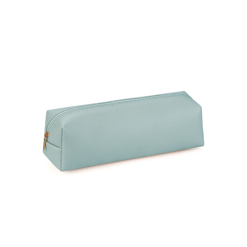PU 가죽 입체 팔각형 문구 가방 단색 대용량 방수 휴대용 연필 가방 지퍼 연필 가방 로고 추가 가능