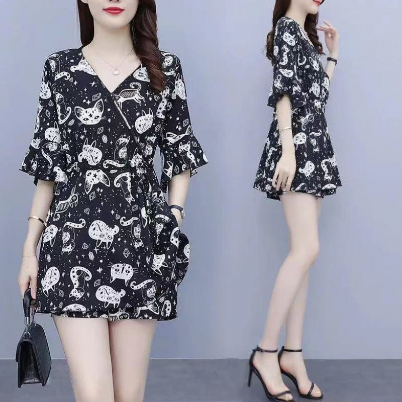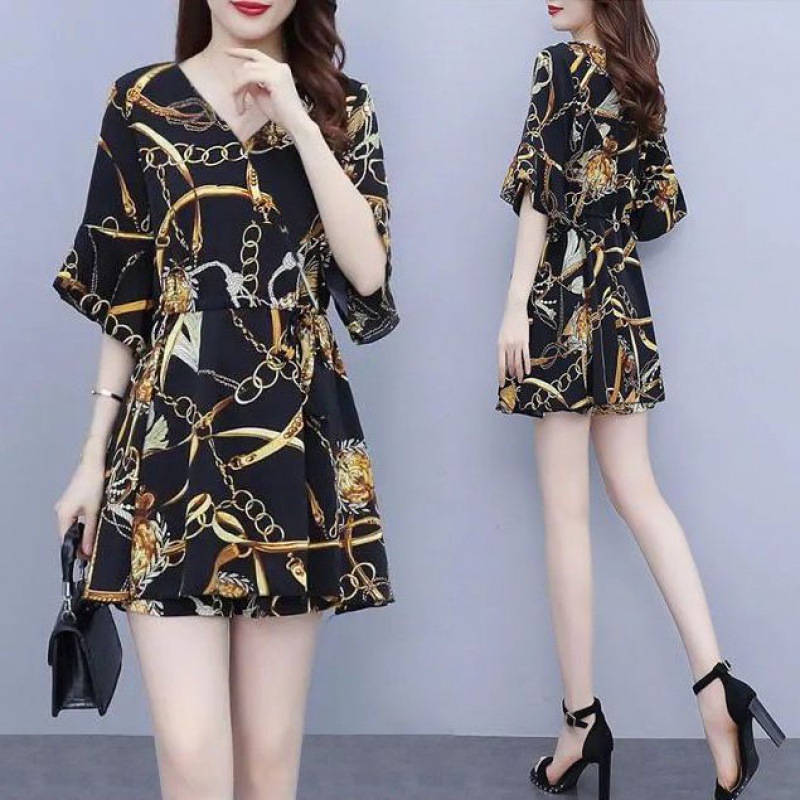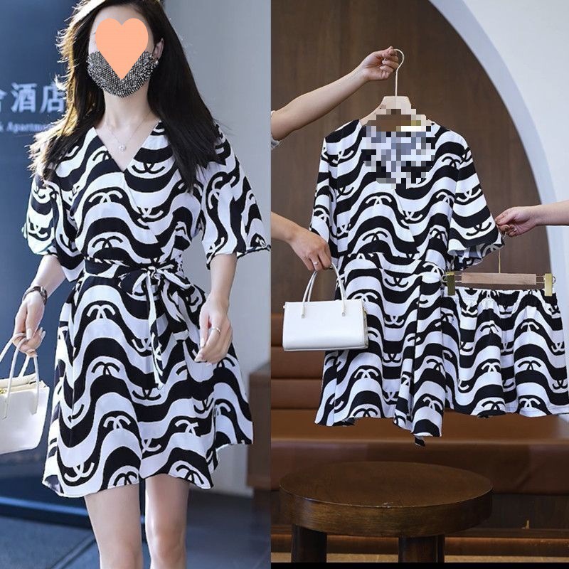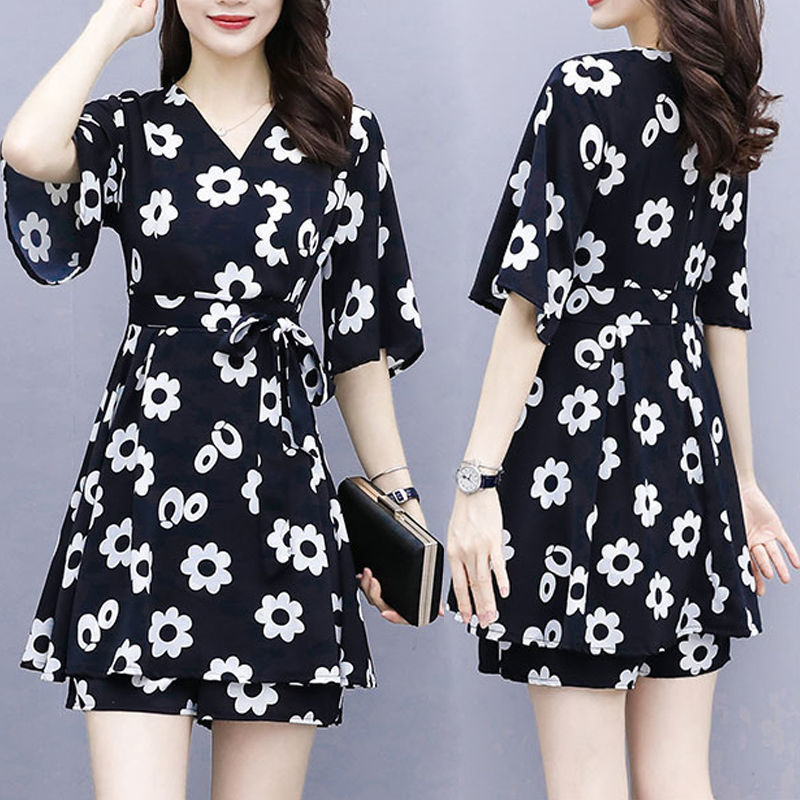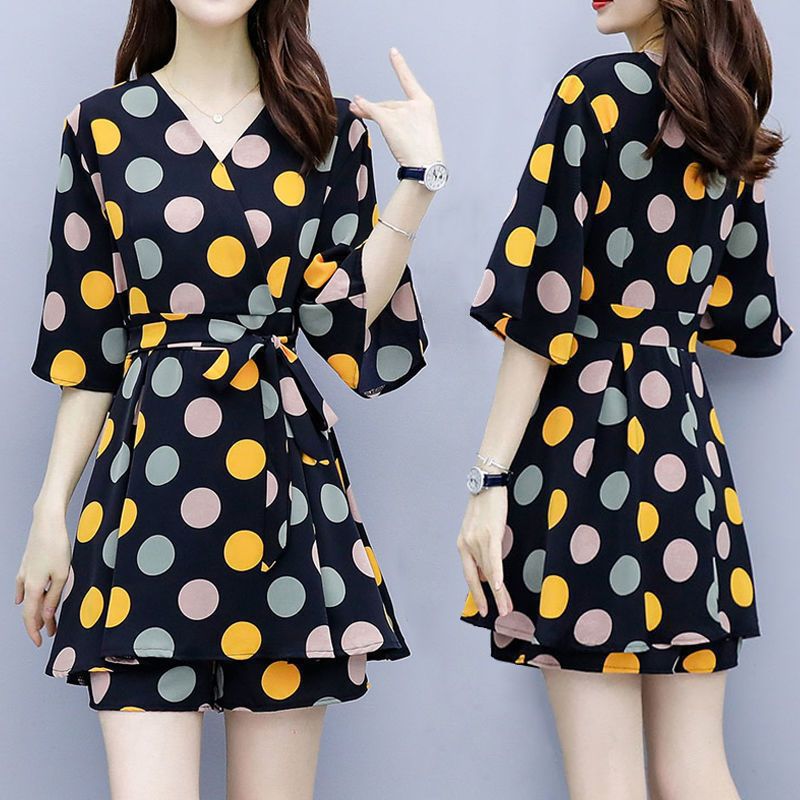 여름 패션 드레스 반바지 정장 여성 슬리밍 인터넷 연예인 쉬폰 반바지 투피스 세트스토어 가기