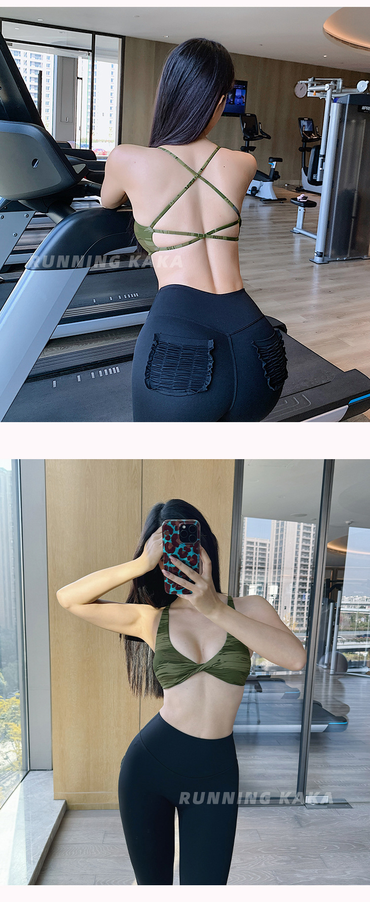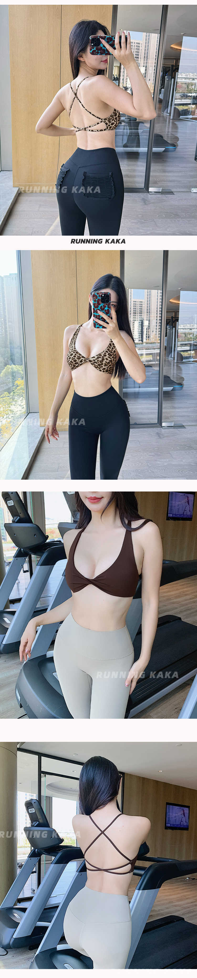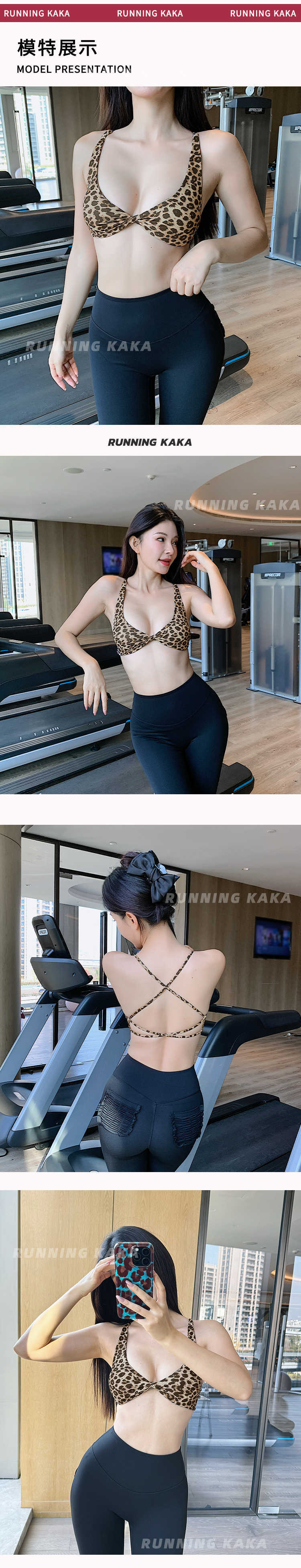 런 바 카카 가슴 패드가 있는 레오파드 프린트 섹시한 유럽 및 미국 여성용 스포츠 브라, 처짐 방지 요가 필라테스 여성용 아름다운 등스토어 가기
