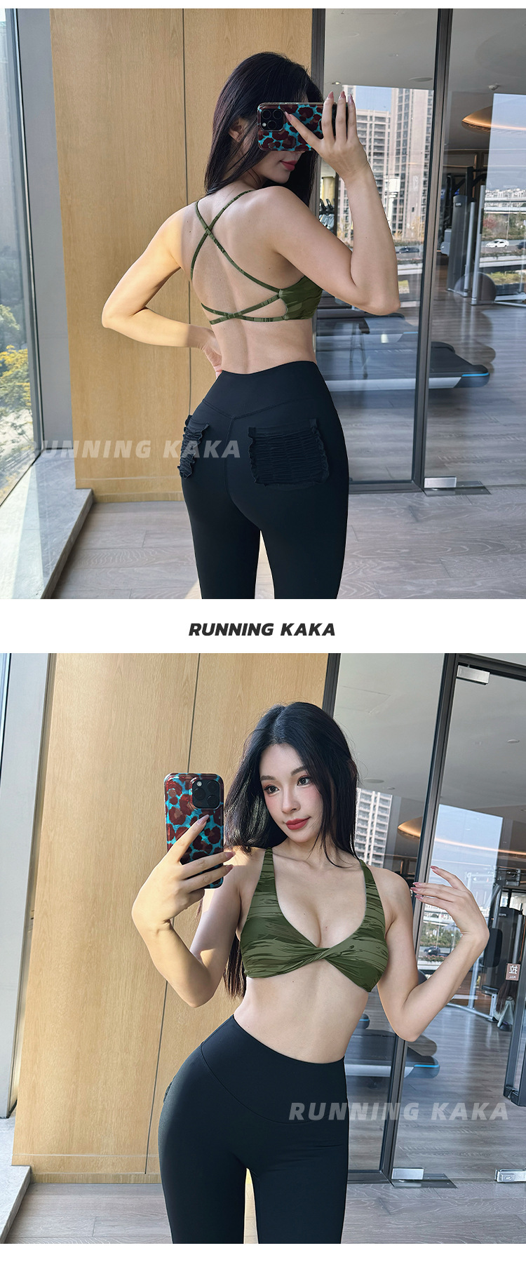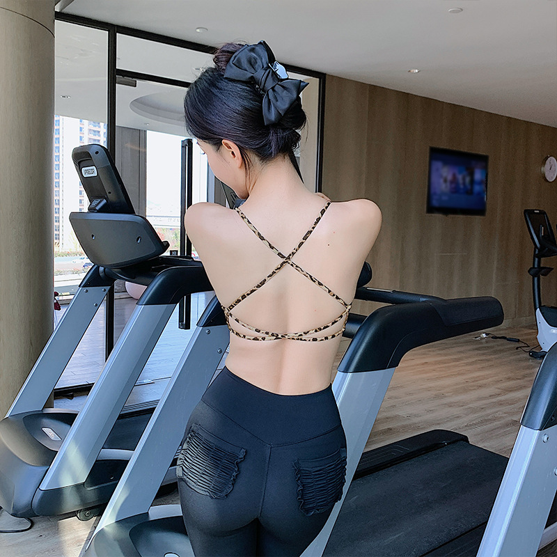 런 바 카카 가슴 패드가 있는 레오파드 프린트 섹시한 유럽 및 미국 여성용 스포츠 브라, 처짐 방지 요가 필라테스 여성용 아름다운 등