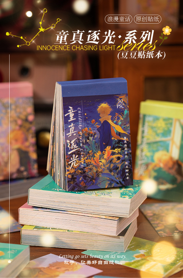 Yuxian Doudou 스티커 책 어린이의 순수한 빛 요정 캐릭터 휴대용 작은 책 재료 핸드북 diy 장식 콜라주