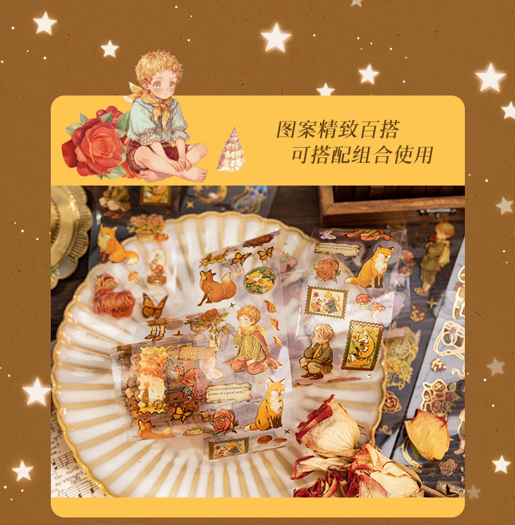 Yuxian 애완 동물 핫 스탬핑 다이 컷 테이프 별의 이야기 왕자 동화 방수 재료 핸드북 카드 diy 콜라주스토어 가기