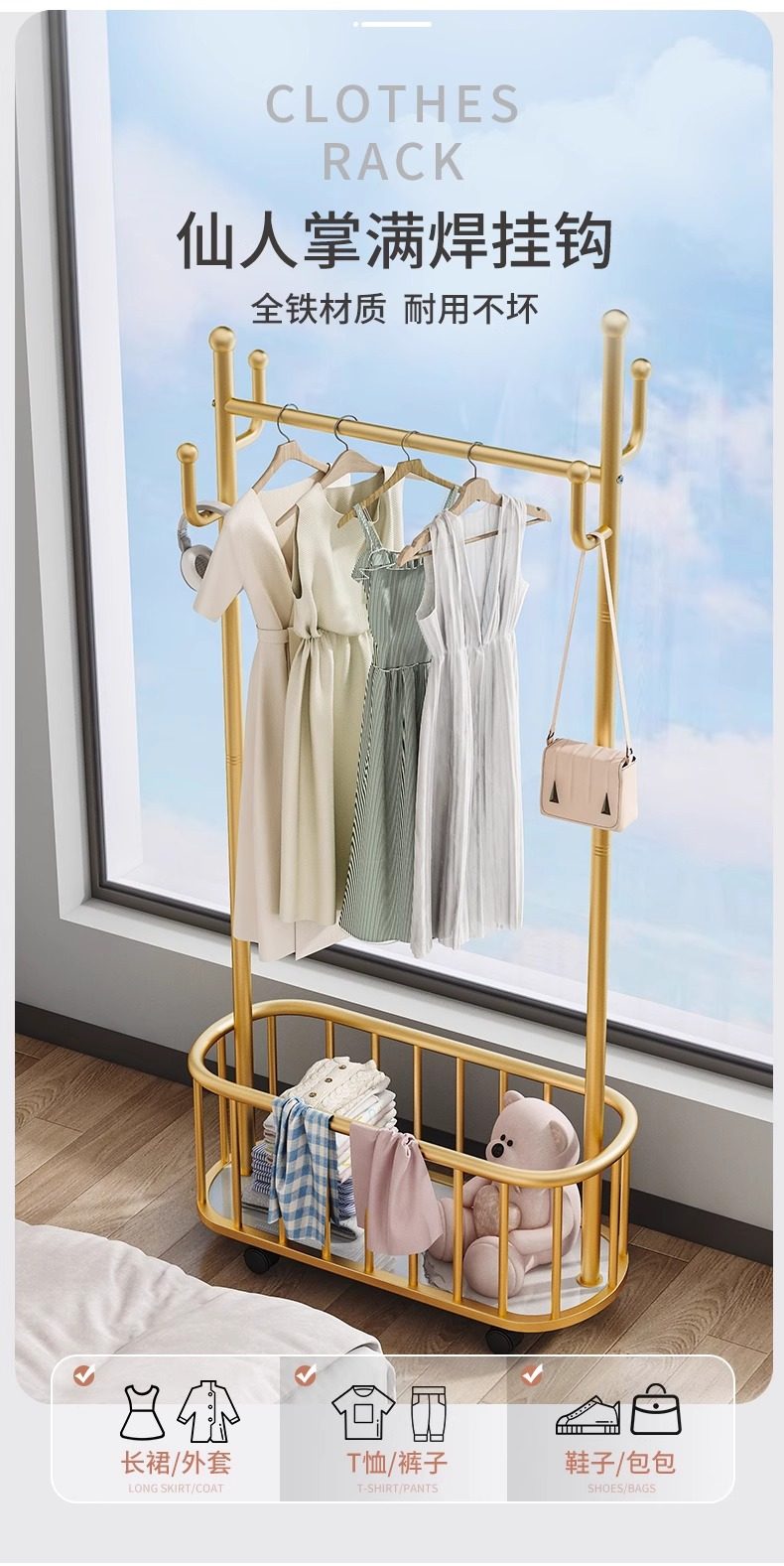 옷걸이 바닥 침실 옷걸이 이동식 가정용 옷걸이 실내 간단한 가벼운 고급 옷걸이 두꺼운스토어 가기