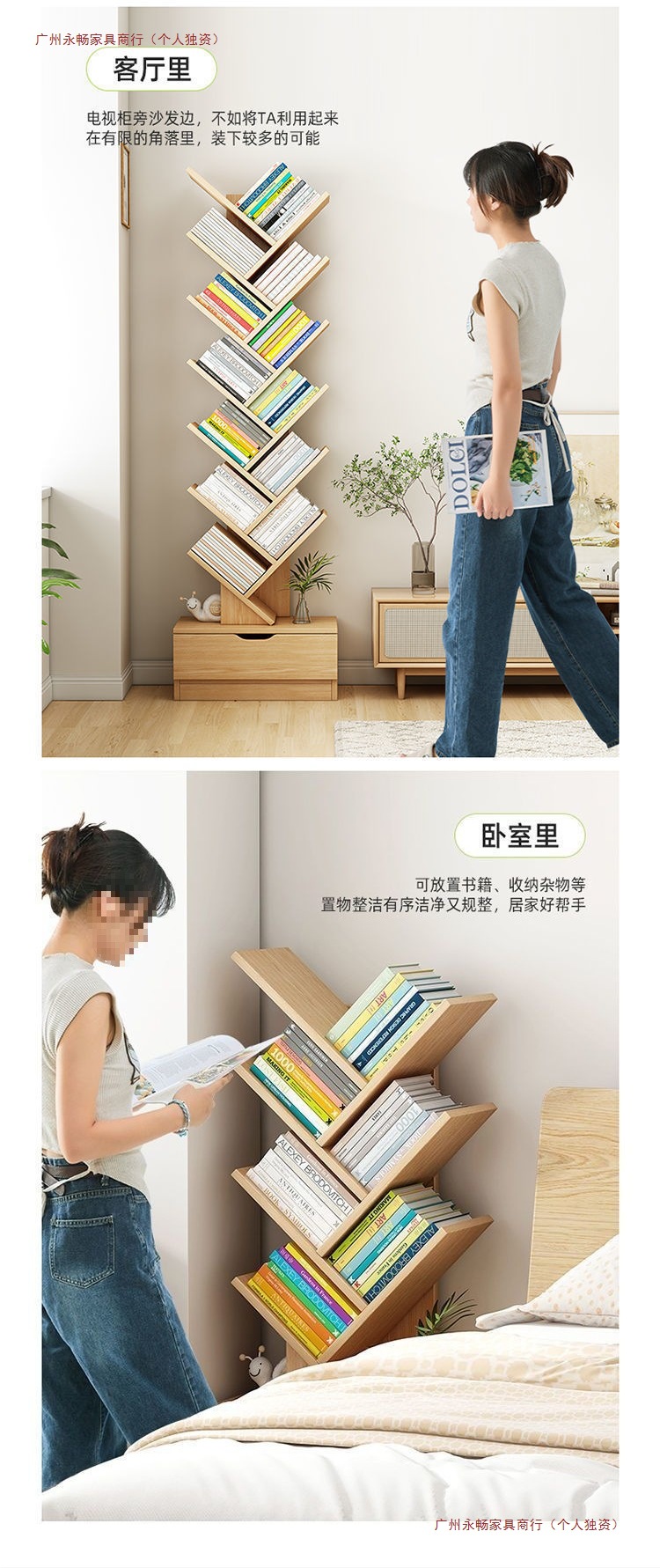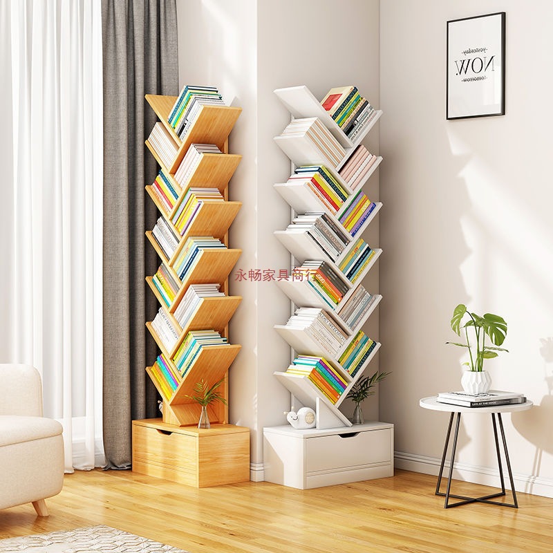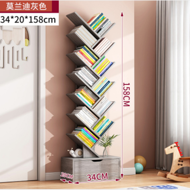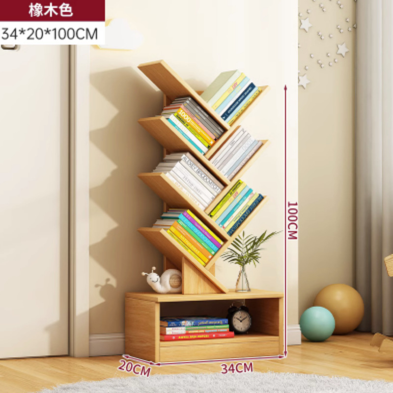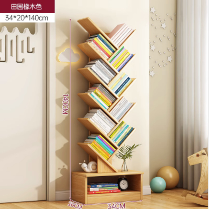 바닥에 붙은 책장, 이동식 수납선반, 다층 간이수납선반, 벽에 붙은 일체형 창작 나무형 책장스토어 가기