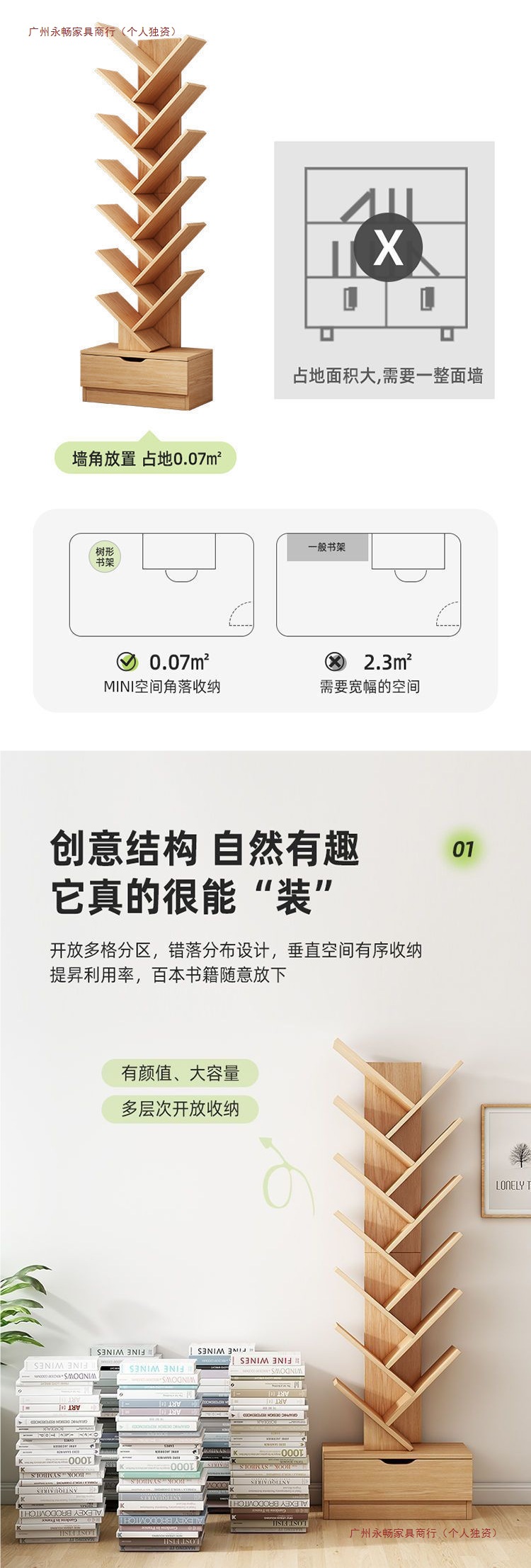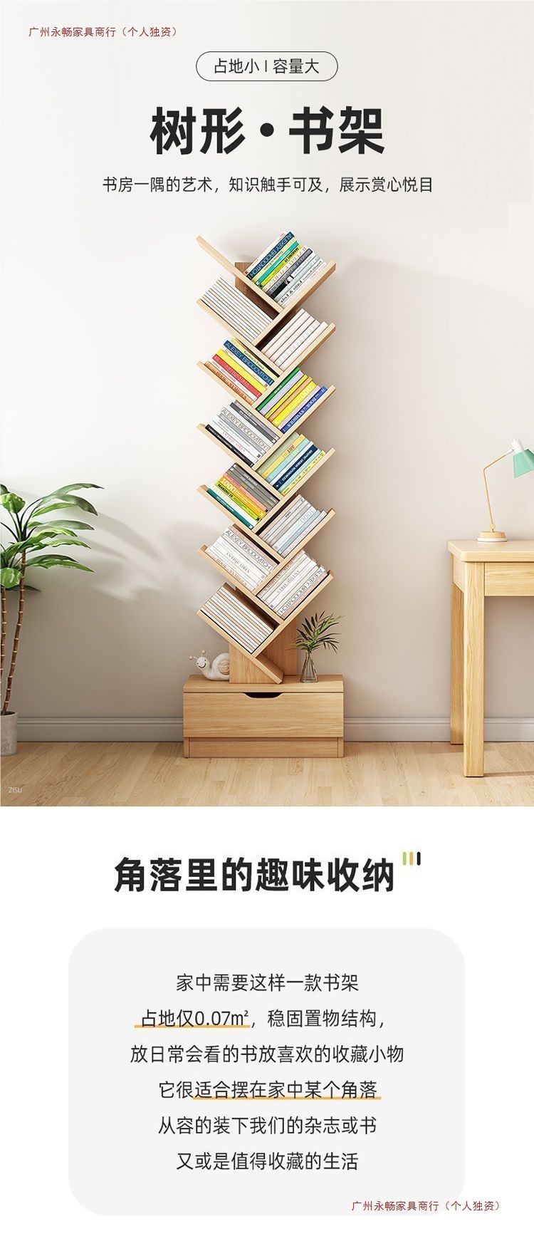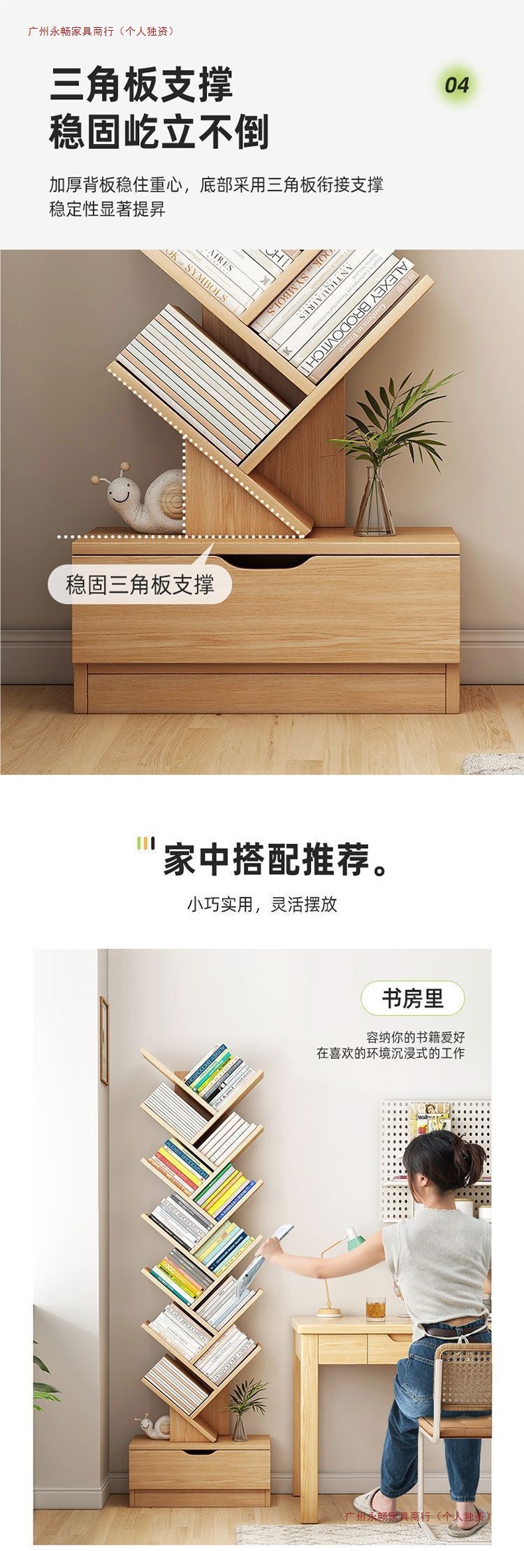 바닥에 붙은 책장, 이동식 수납선반, 다층 간이수납선반, 벽에 붙은 일체형 창작 나무형 책장스토어 가기