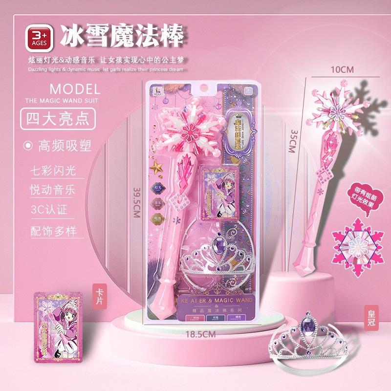 • [Yuedong 음악/다채로운 플래시/다양한 액세서리] 핑크 얼음과 눈 소리와 빛의 마술 지팡이