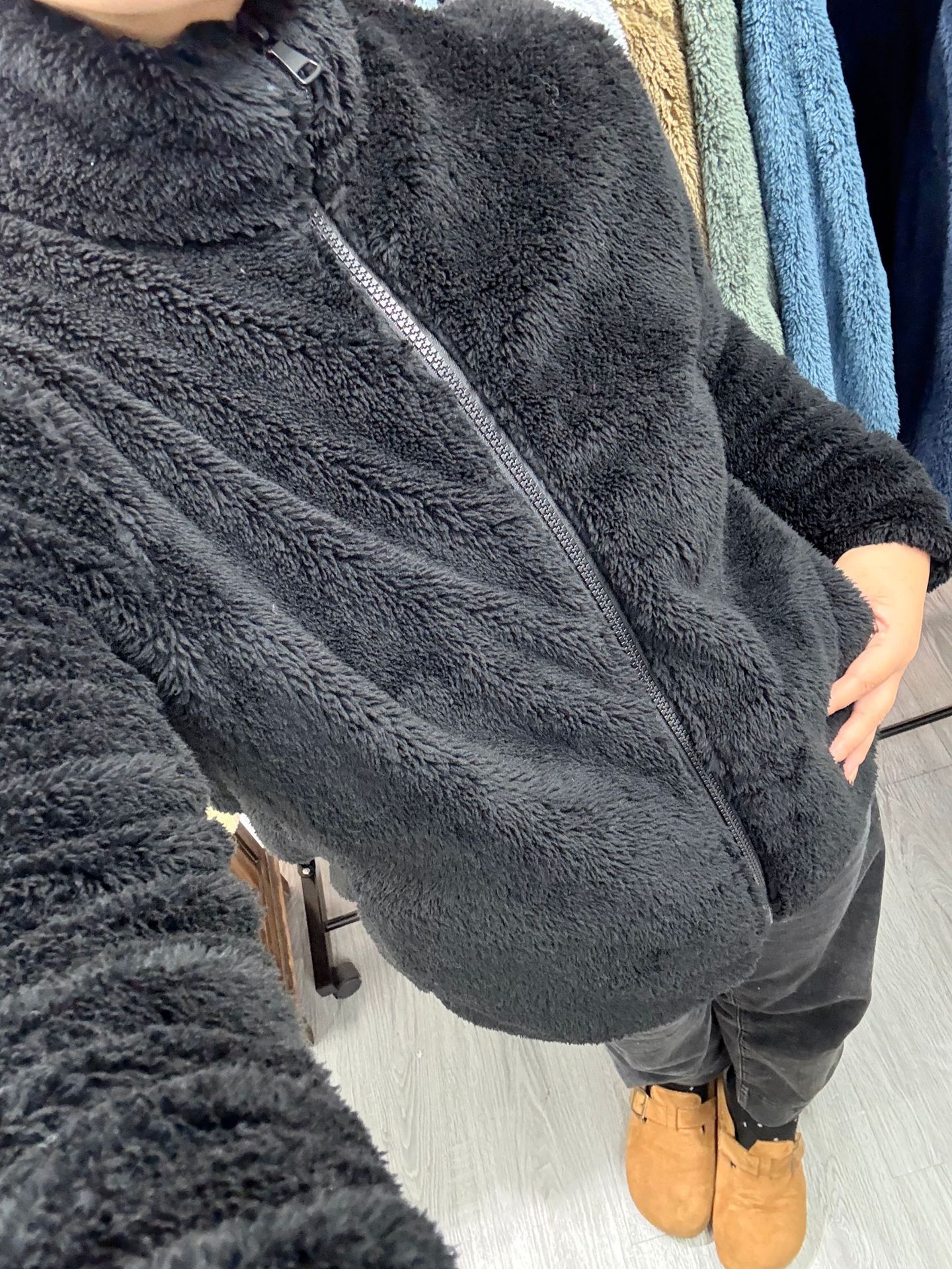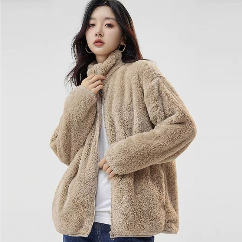 가을 겨울 여성용 모피 롱 플리스 긴팔 재킷 카디건 스탠드 칼라 보온 재킷 470137 449753