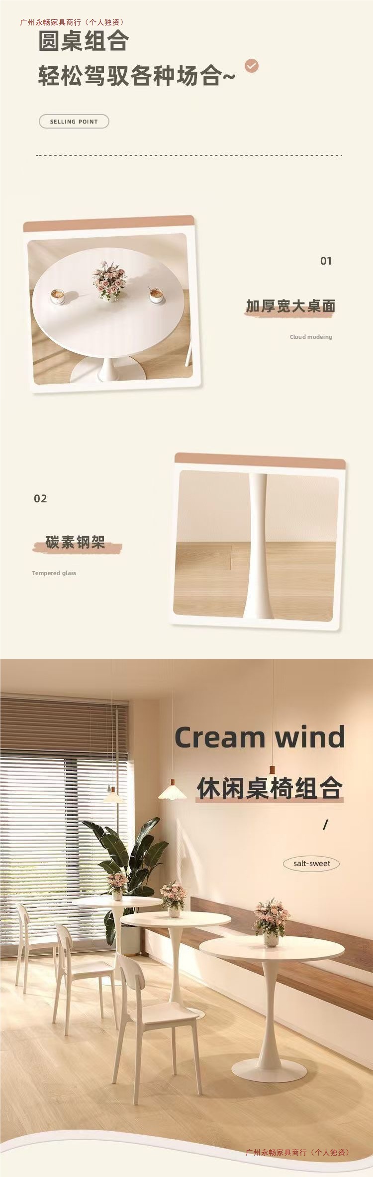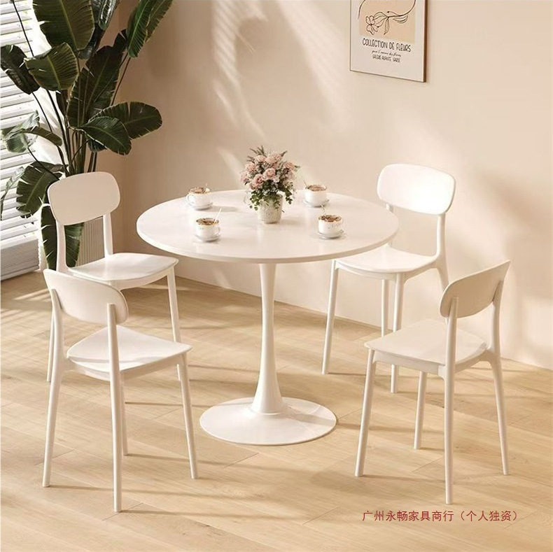 흰색 북유럽 테이블 발코니 라운드 협상 밀크티 커피 숍 테이블과 의자 조합 식탁 튤립 원형 테이블 식탁스토어 가기