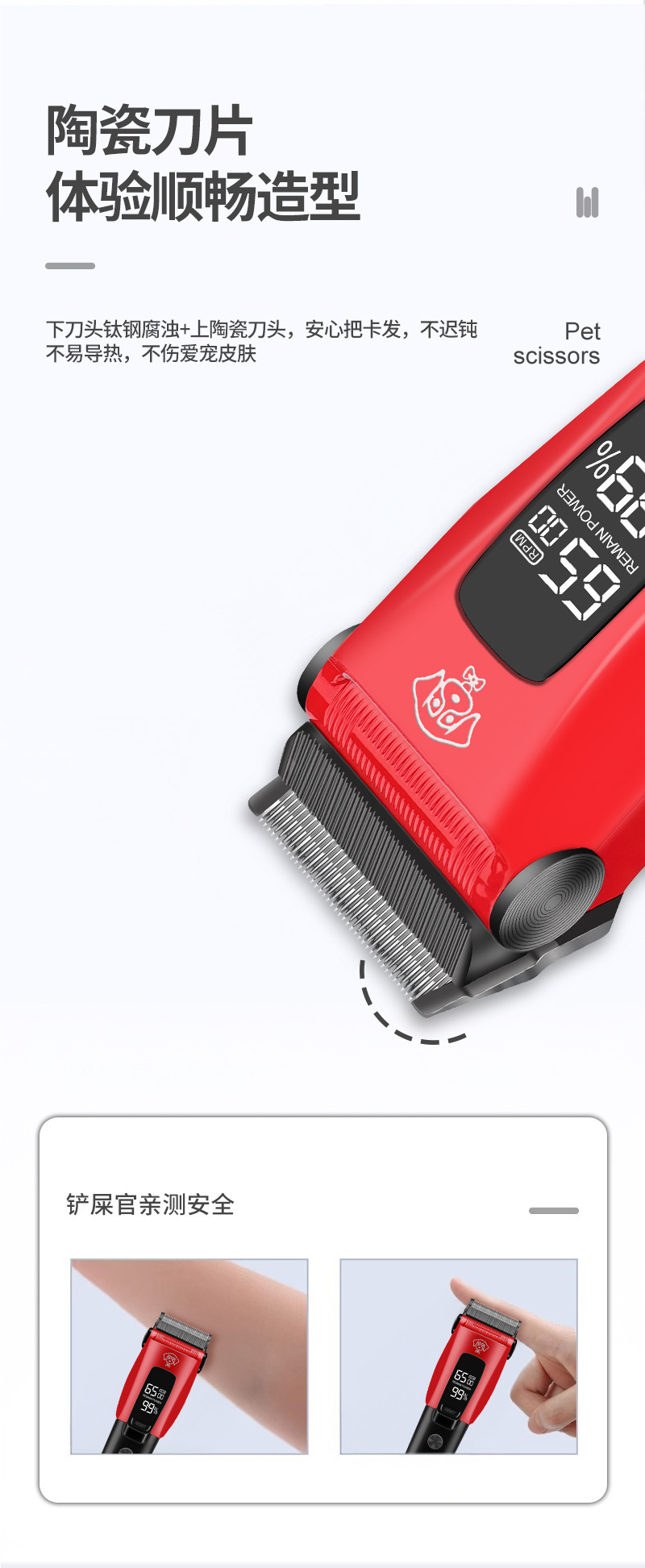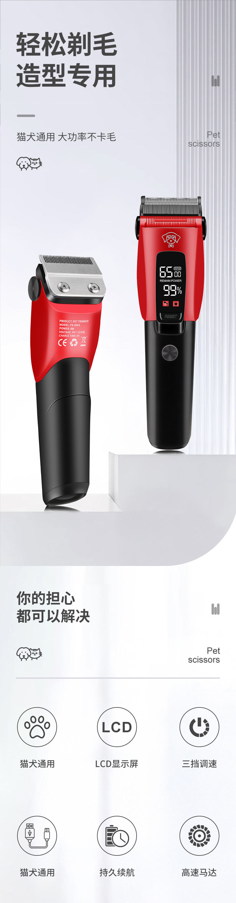 产品配件:主机+USB充电线+限位梳*6(3/6/9/1216/19cm)+清洁刷+英文说明书+梳子+油瓶;