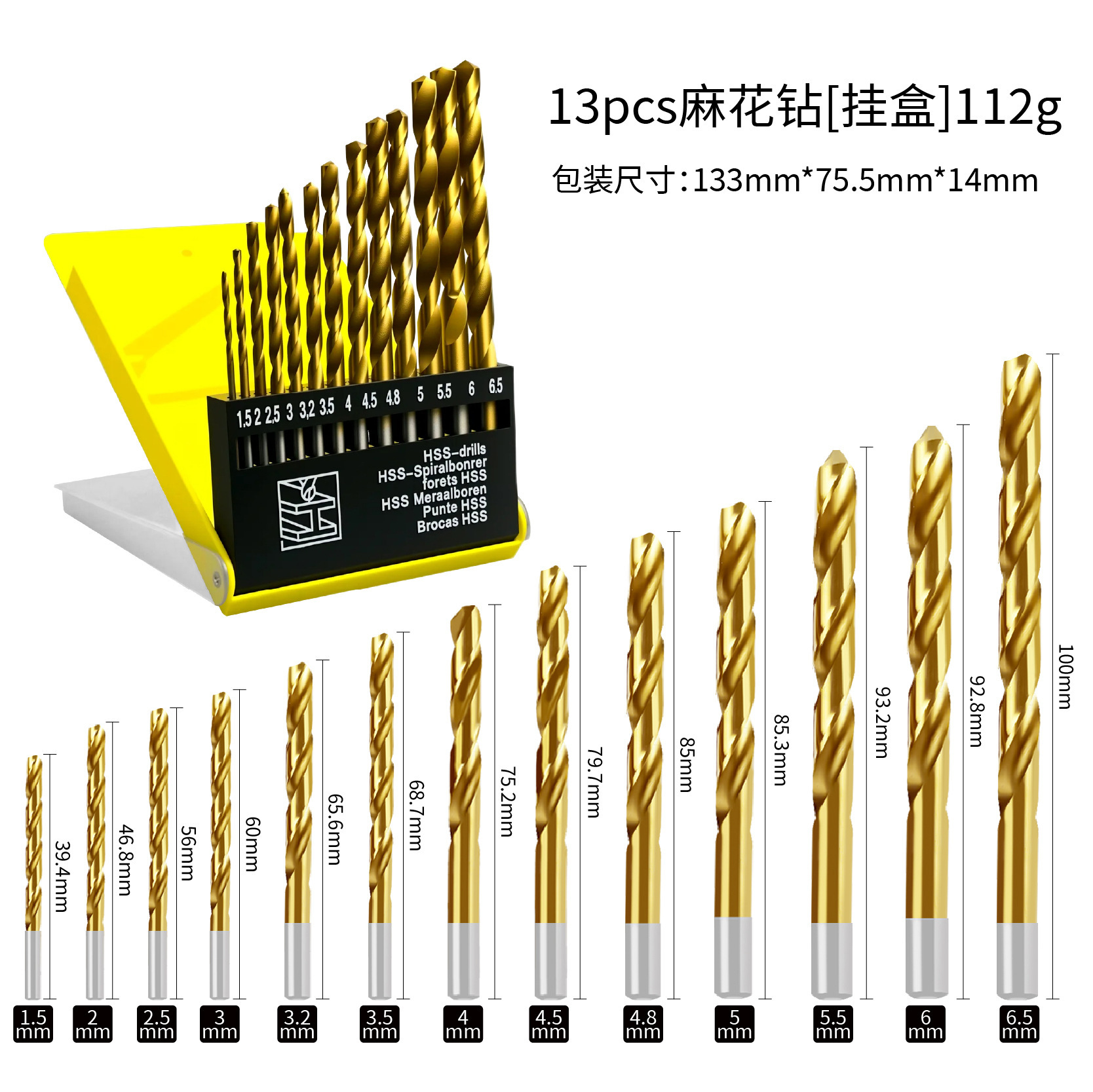 • A1453-13PC 원형 손잡이 트위스트 드릴 플라스틱 상자(버블 백 포함) 115g