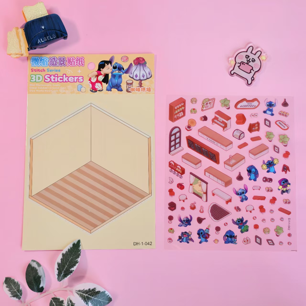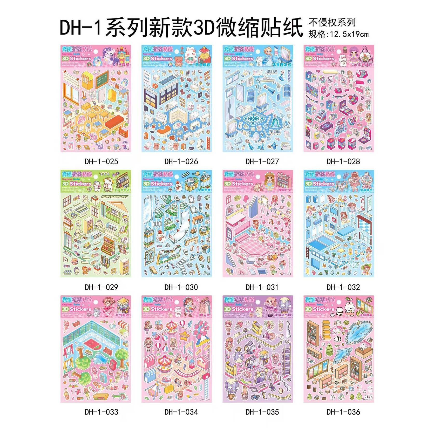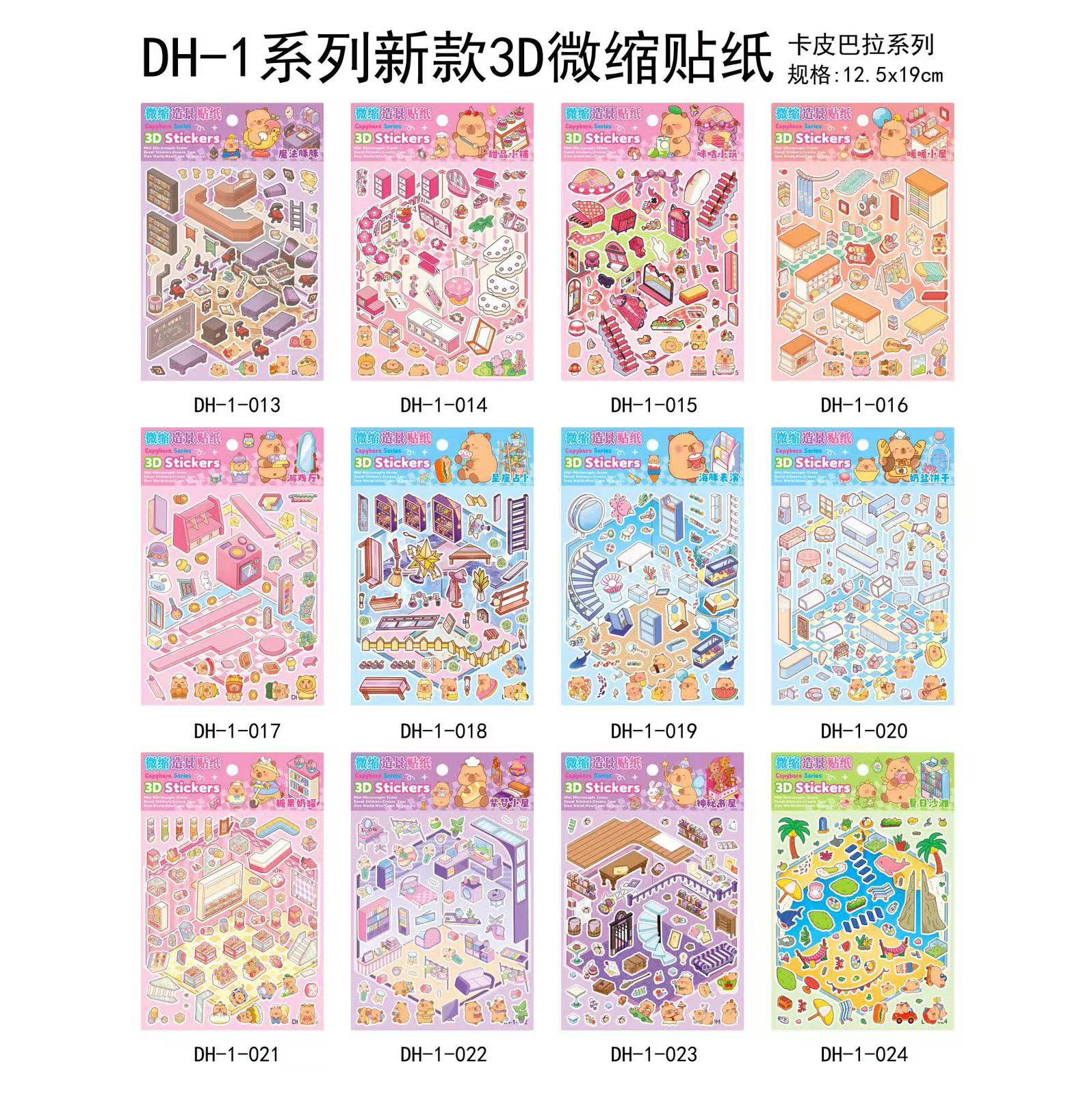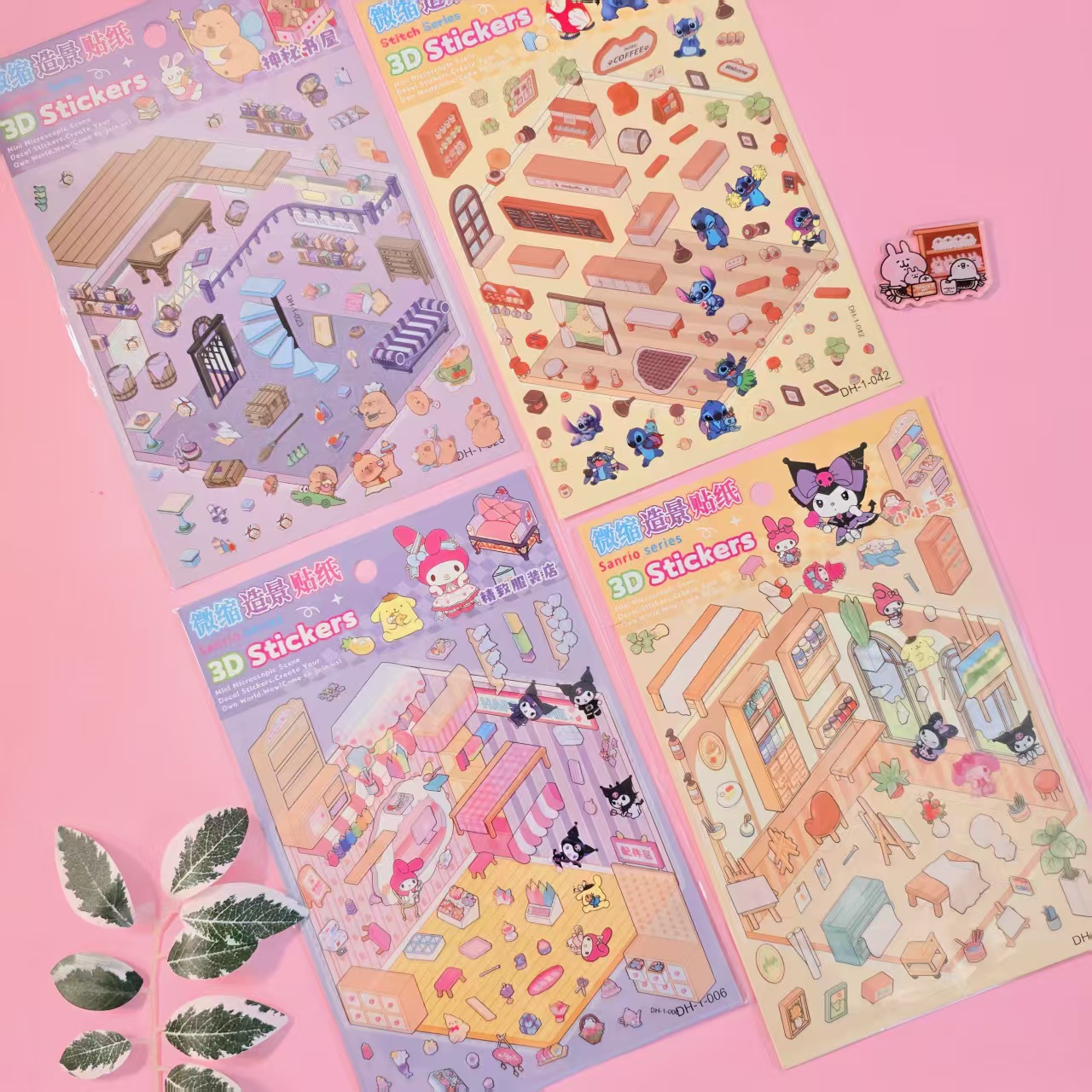 만화 조경 스티커 미니어처 장면 3D 입체 캐빈 Sanrio Capibala DIY 감압 스티커스토어 가기