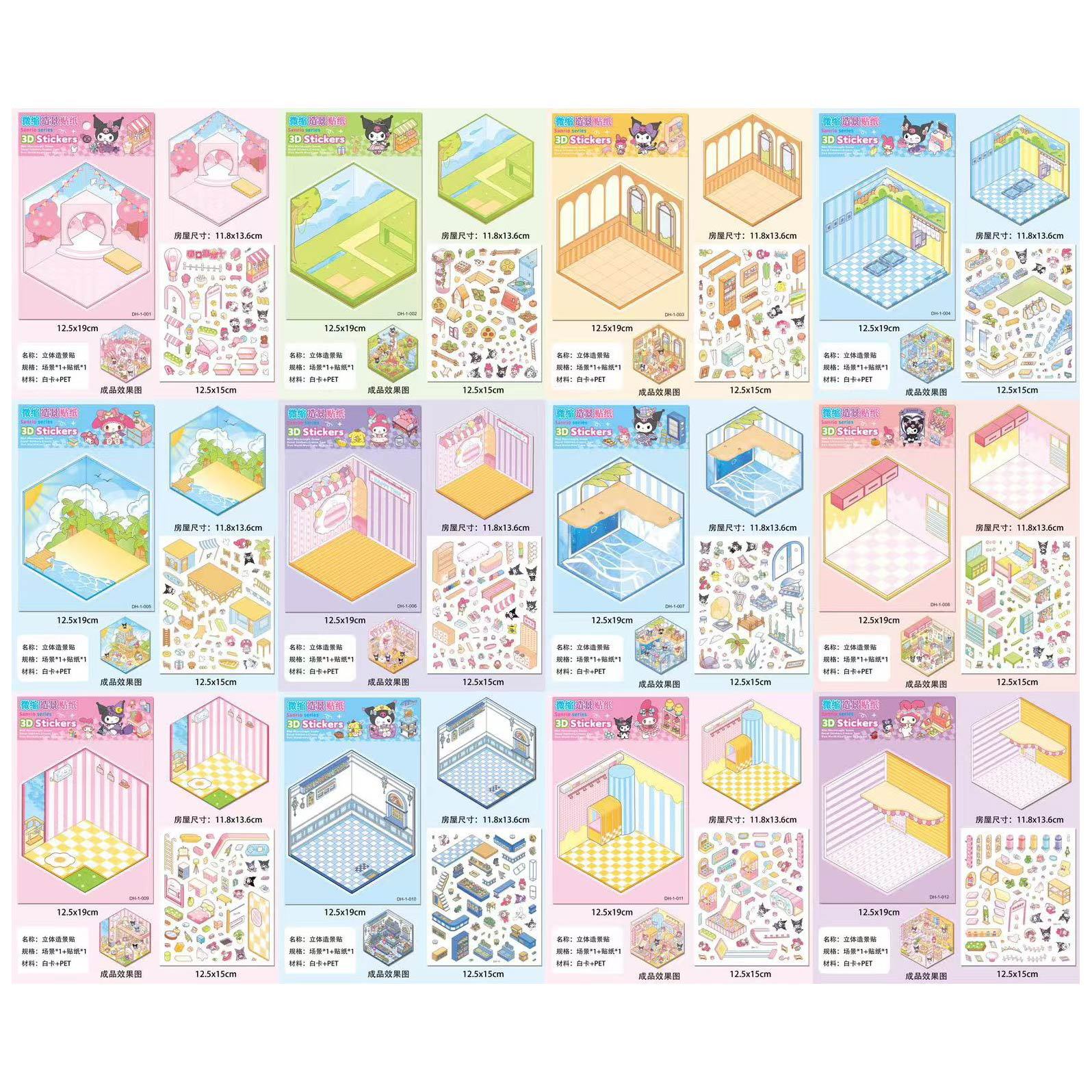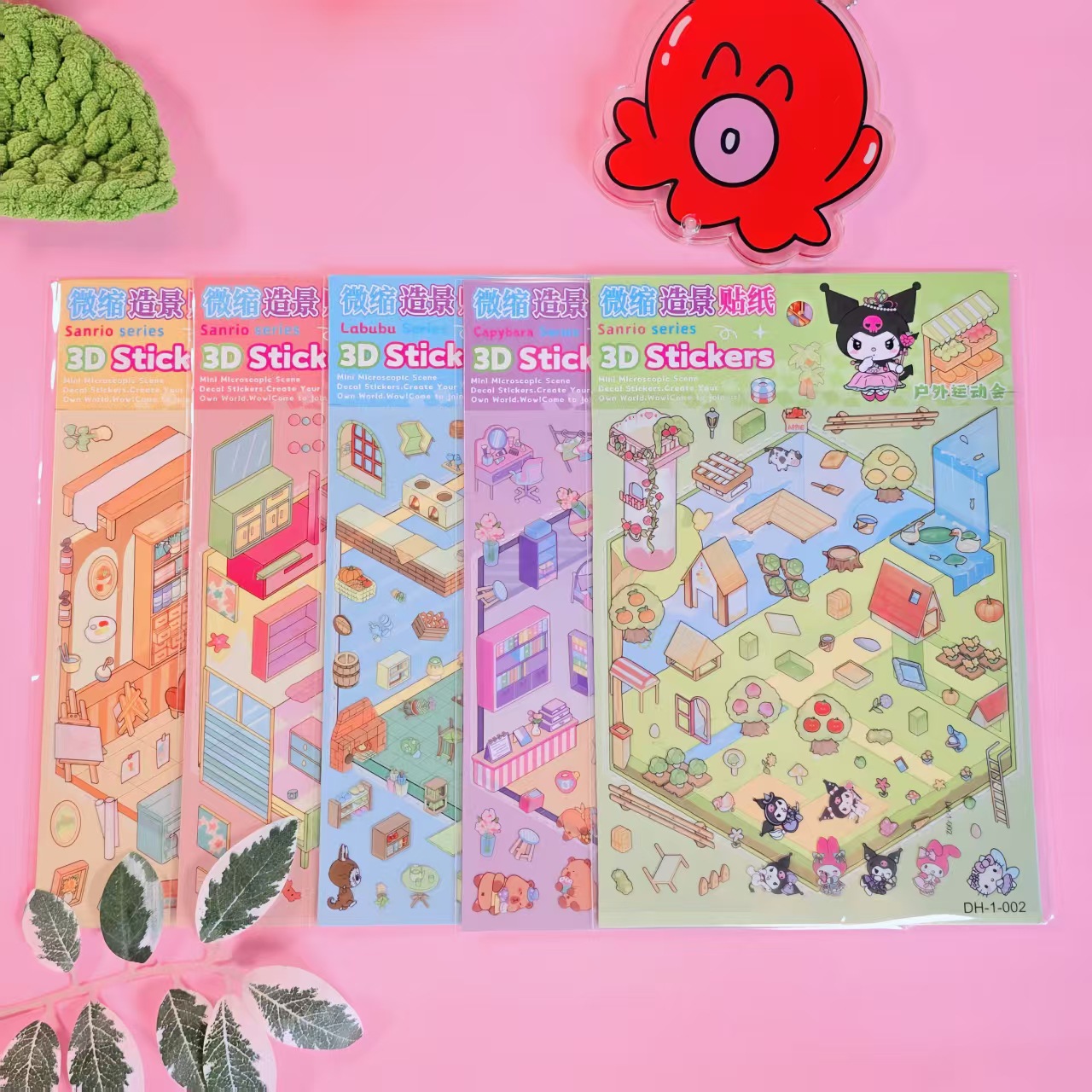 만화 조경 스티커 미니어처 장면 3D 입체 캐빈 Sanrio Capibala DIY 감압 스티커
