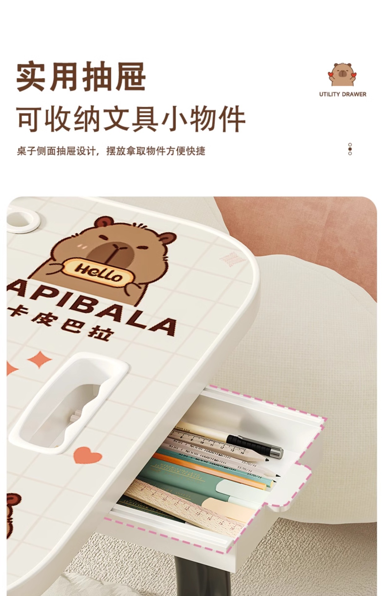 • 〔 ✪ ✪ ✪ ✪ 〕카피바라 [안정적인 테이블다리] 서랍 + 책장 + 컵홀더 + 카드슬롯 [ ✪ ✪ ✪ ✪ 〕