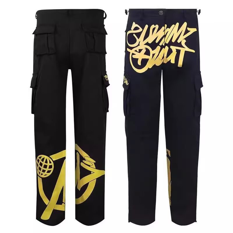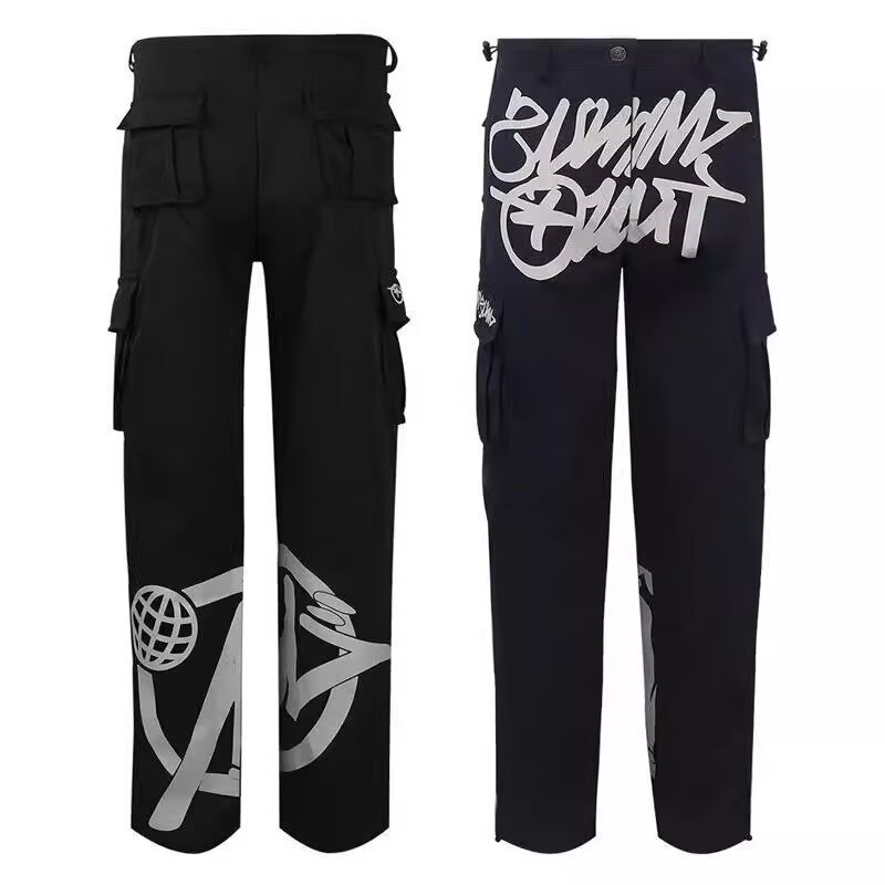 국경 간 AliExpress 미국 힙합 프린트 작업복 바지 남성 스팟 도매 느슨한 스트레이트 심플 남성 캐주얼 바지스토어 가기