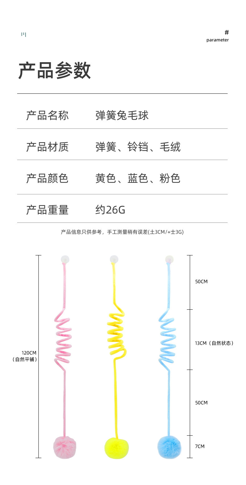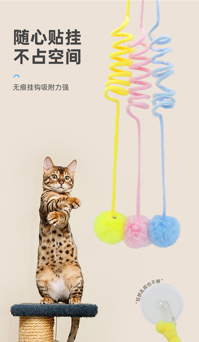 도매 빨판 스프링 토끼 모피 공 고양이 장난감 재미있는 고양이 공 자기 즐거움과 지루함 해소 대화 형 고양이 장난감 공 애완 동물 용품스토어 가기