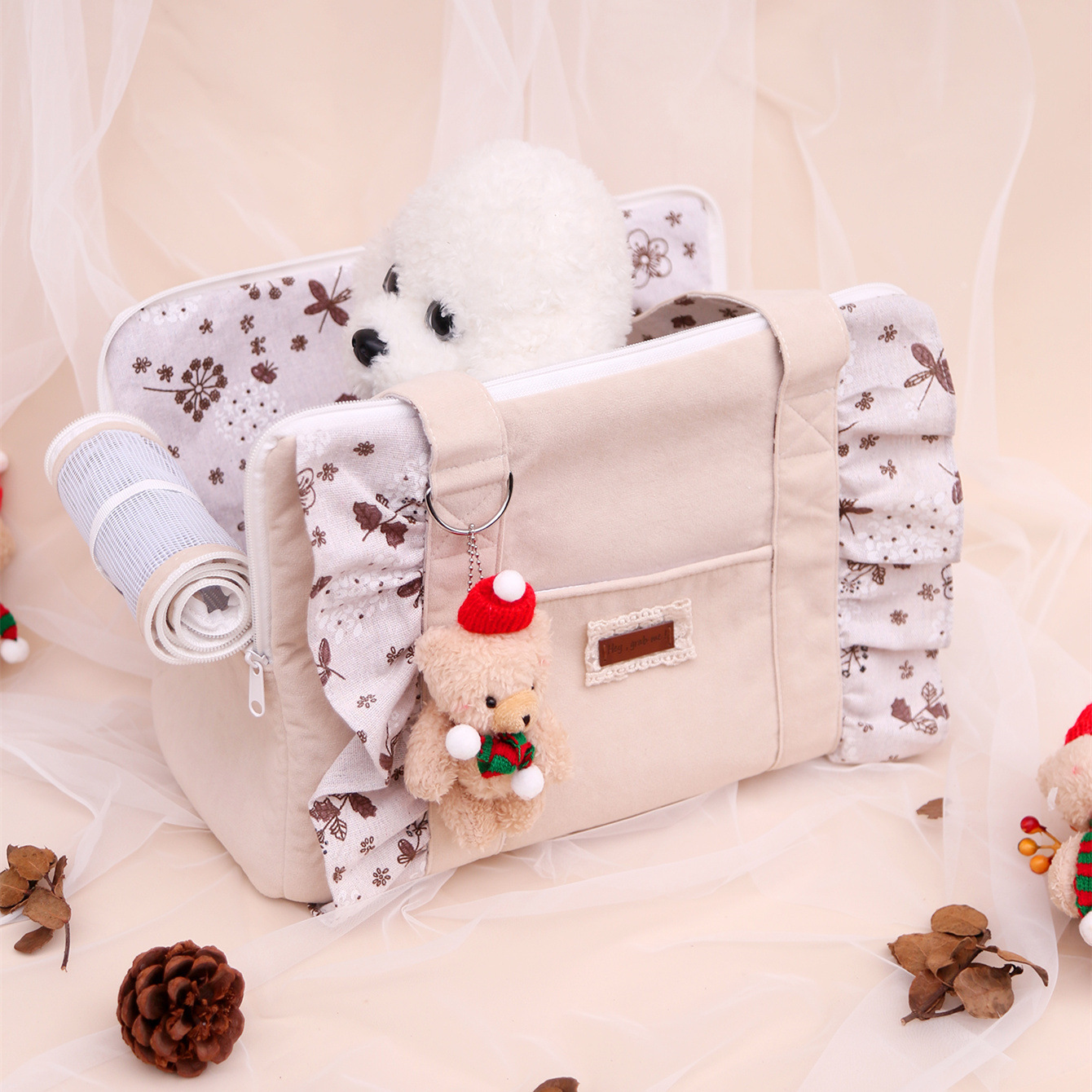 绒面保暖黄油小熊宠物外出包防止应激猫咪外出便携式狗狗透气宠物