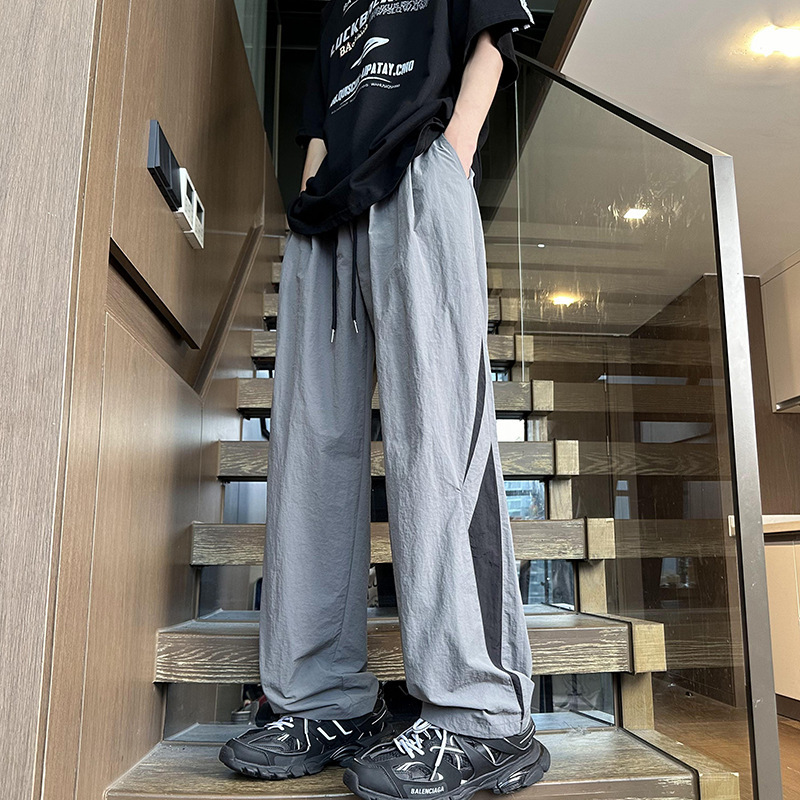 여름 얇은 속건성 아이스 실크 바지 남성용 미국 패션 브랜드 야외 등산 바지 루즈 스트레이트 캐주얼 바지
