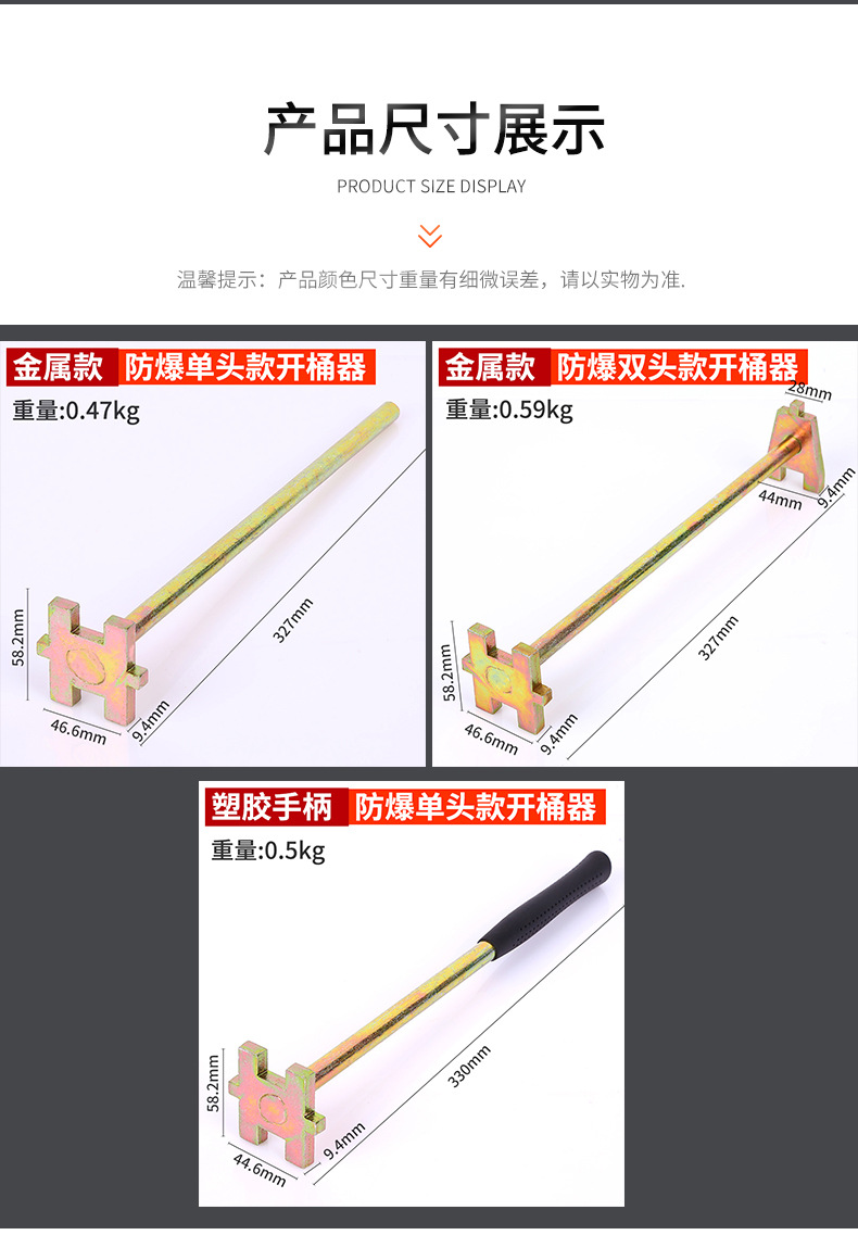 • 플라스틱 손잡이가 있는 방폭형 단일 헤드 통 오프너