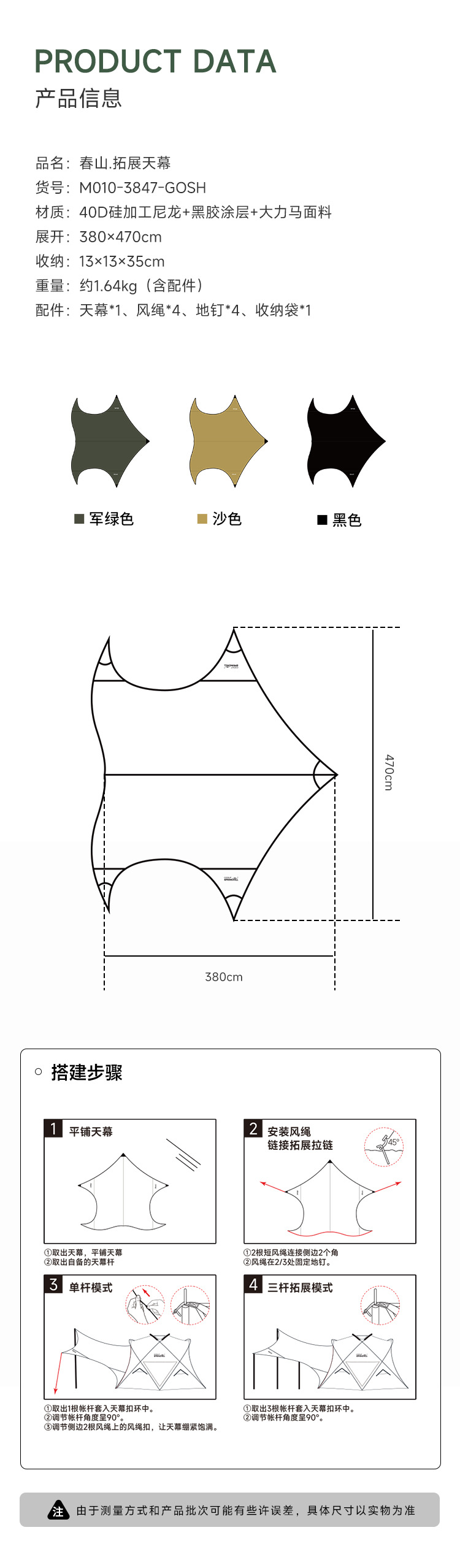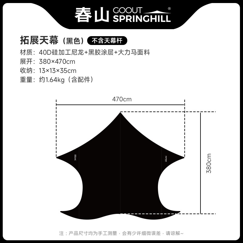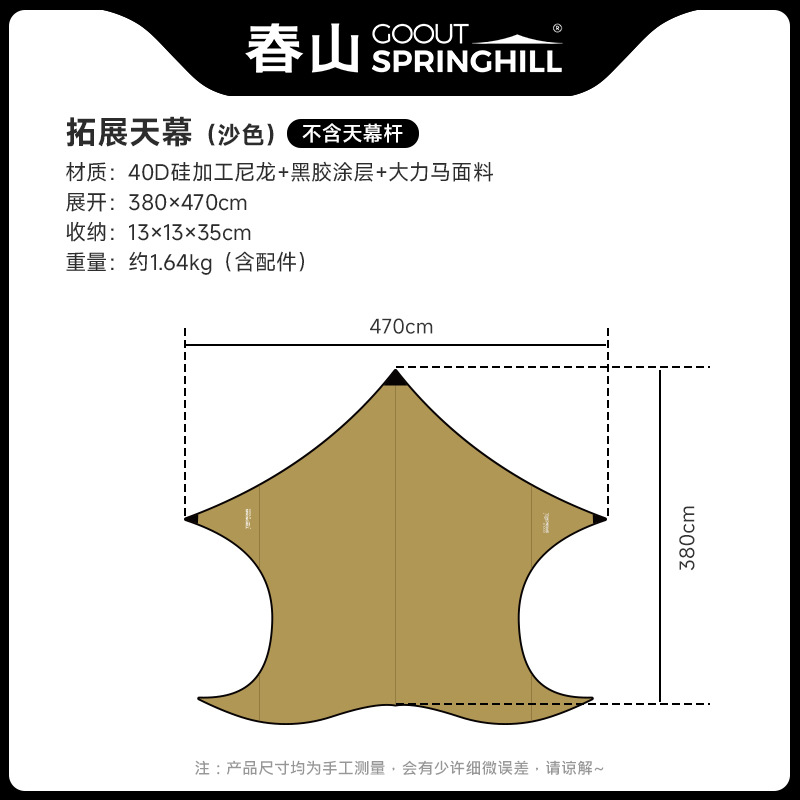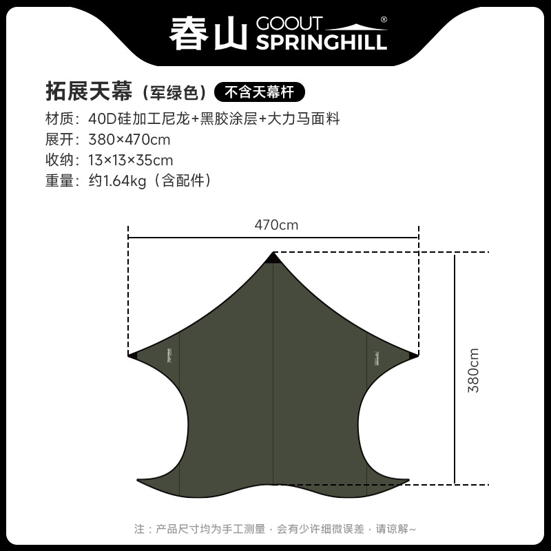 Chunshan Kunlun Xiaogu 확장 캐노피 새로운 야외 캠핑 경량 비닐 캐노피 방수 및 자외선 차단 천막