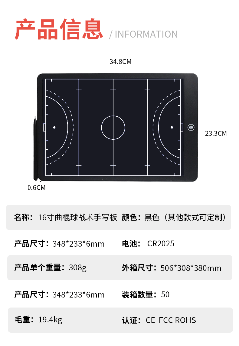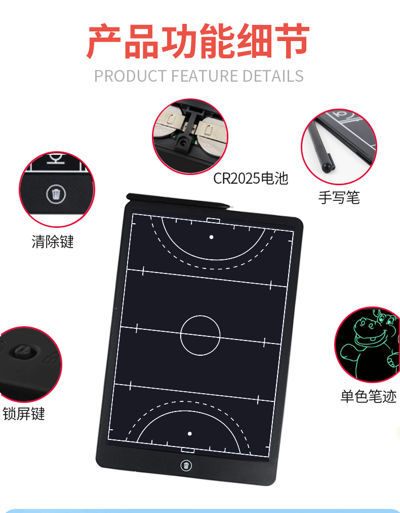 스포츠 하키 게임 16inch 축구 전술 보드 LED LCD 전자 필기 보드 재고 있음