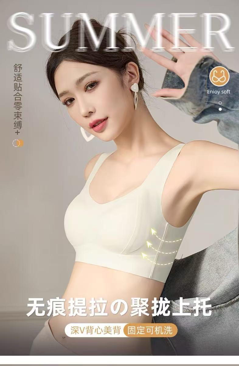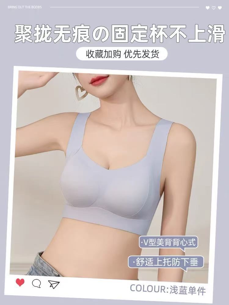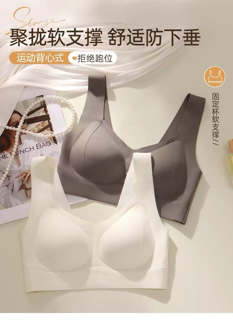 와이어 프리, 심리스, 글로시 속옷, 여성용 스포츠 고정 컵 조끼, 푸시업 통기성 조절 브라스토어 가기