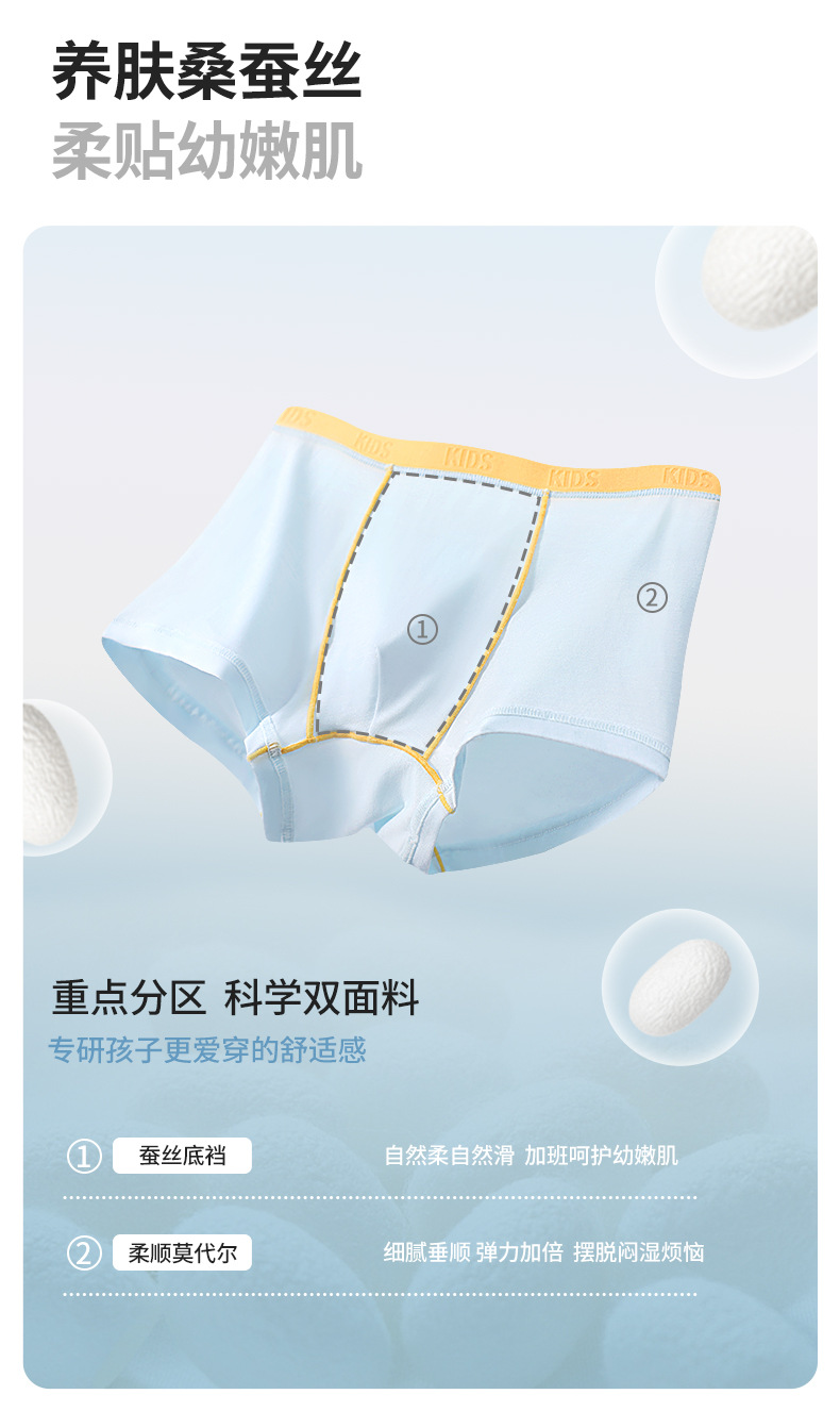 클래스 A 모달 소년 속옷 남성용 10A 등급 뽕나무 실크 항균 가랑이 소년용 흡습성 부드럽고 통기성이 뛰어난 복서 팬티