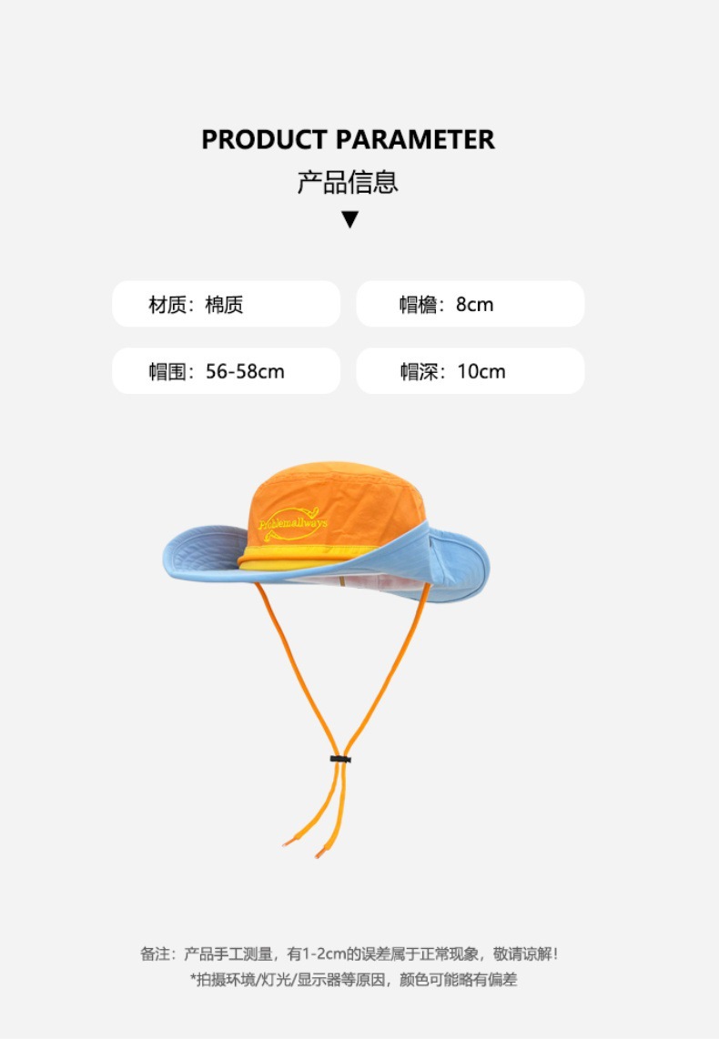 2025 새로운 복고풍 작업복 도파민 컬러 매칭 대형 챙 어부 모자 여성 봄, 여름 야외 태양 보호 하이킹 모자
