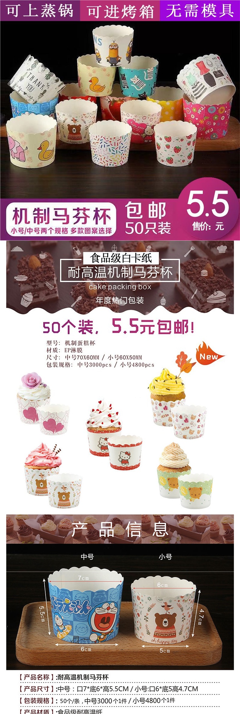 고온 방지 컵케이크 컵 베이킹을 사용한 스티머 케이크 오븐, 소형 및 중형 머핀 컵 종이 트레이 가정용 금형