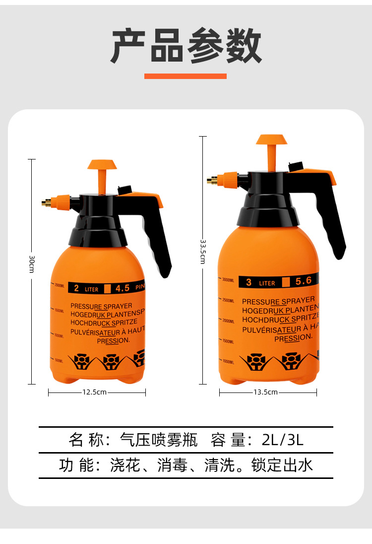 • 3리터 주황색 물뿌리개(잠금 버전) 3팩