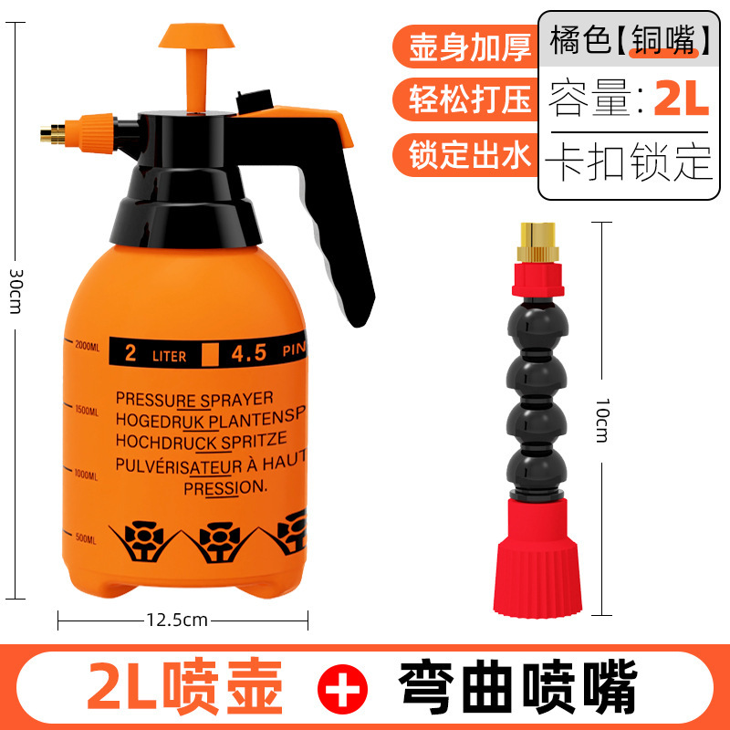 • 2리터 주황색 물뿌리개 + 곡선형 회전 노즐