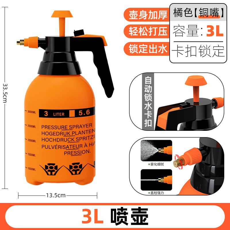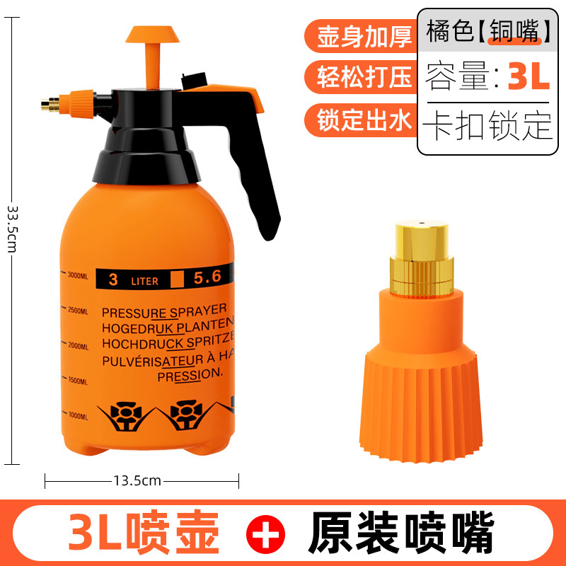 • 3리터 주황색 물뿌리개 [잠금 자동 물 배출 구리 노즐]