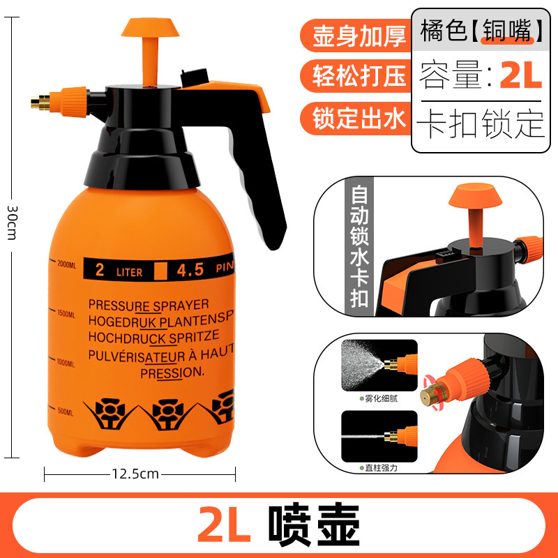 • 2리터 주황색 물뿌리개 [잠금 자동 물 배출 구리 노즐]