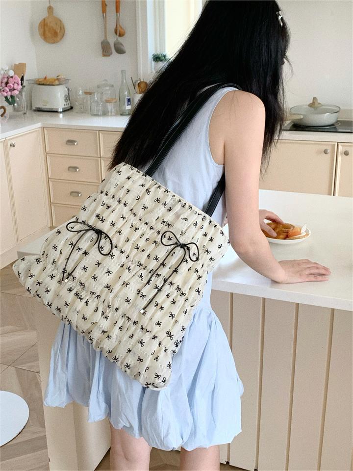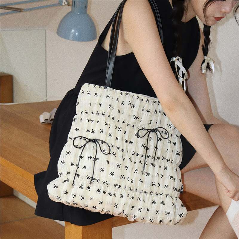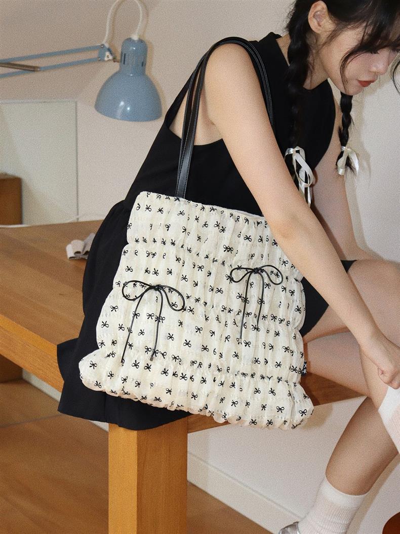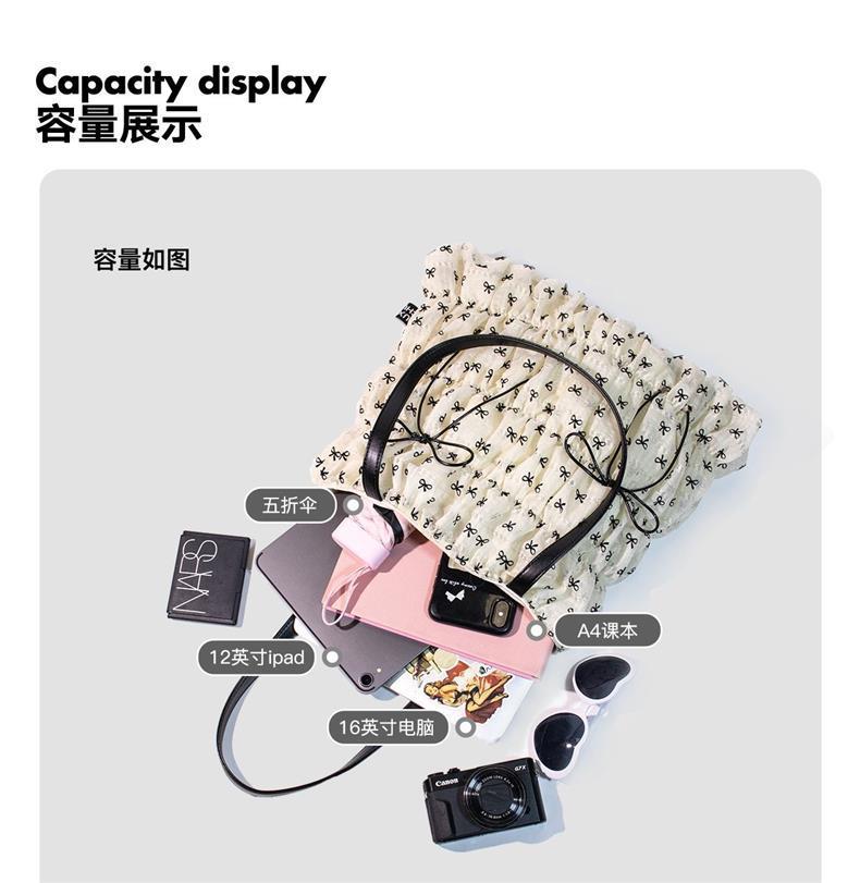 패션 토트백 여성용 2026년 신상 대용량 주름 리본 토트백 캐주얼 출퇴근용 숄더백 여성용스토어 가기