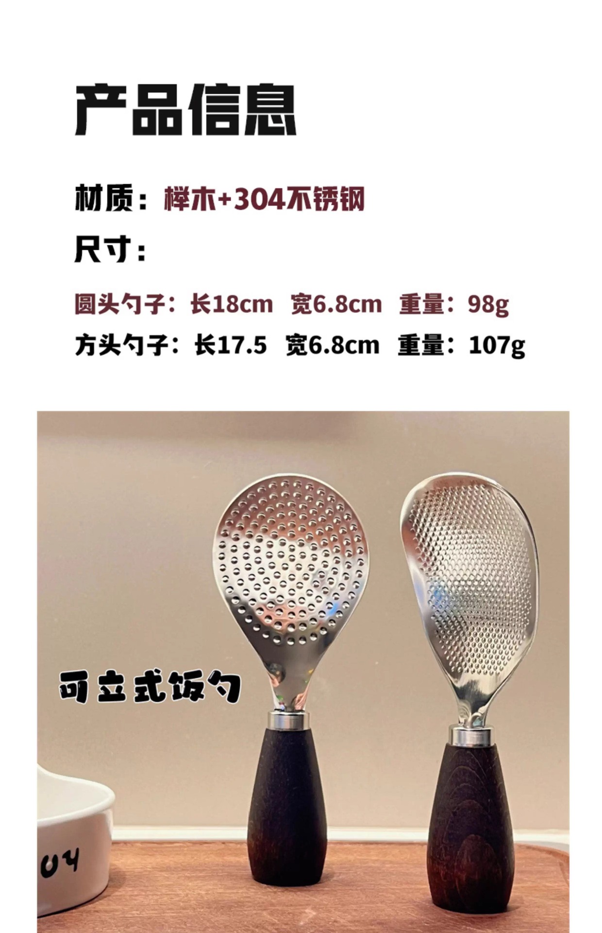 나무 손잡이 스테인레스 스틸 밥 숟가락 밥 주걱 가정용 수직 나무 손잡이 가정용 밥솥용 숟가락스토어 가기