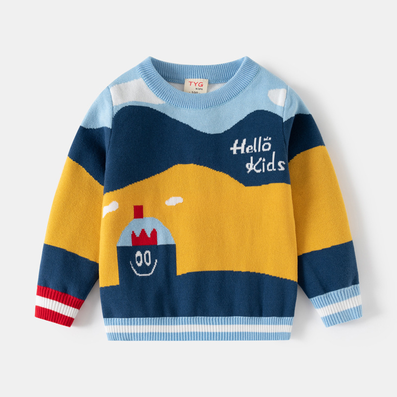 소년 더블 레이어 코튼 풀오버 스웨터 재고 있음 2025 가을 겨울 신작 아동복 아동용 컬러 베이스 스웨터스토어 가기