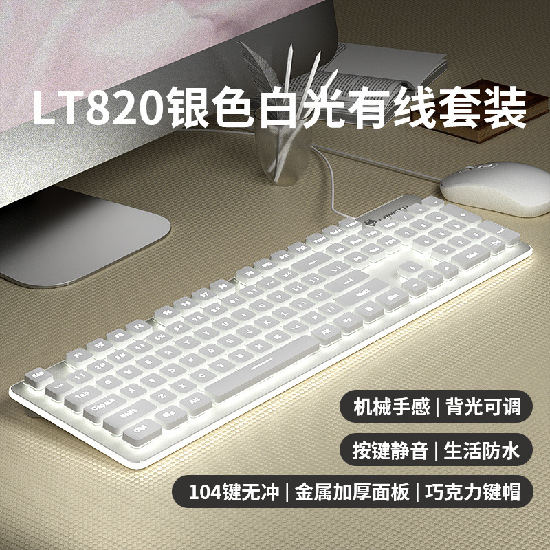 LT820 키보드 초저소음 기계적 느낌 빛나는 컴퓨터 태블릿 소녀 사무실 키보드 및 마우스 세트 무선스토어 가기