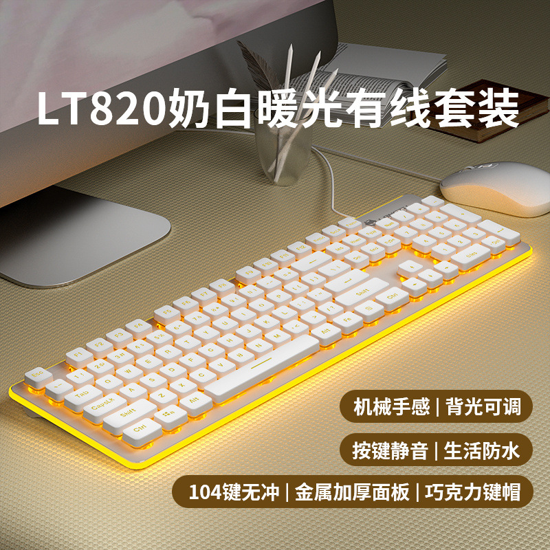 • LT820 밀크 화이트 따뜻한 조명 유선 버전 키보드 및 마우스 세트