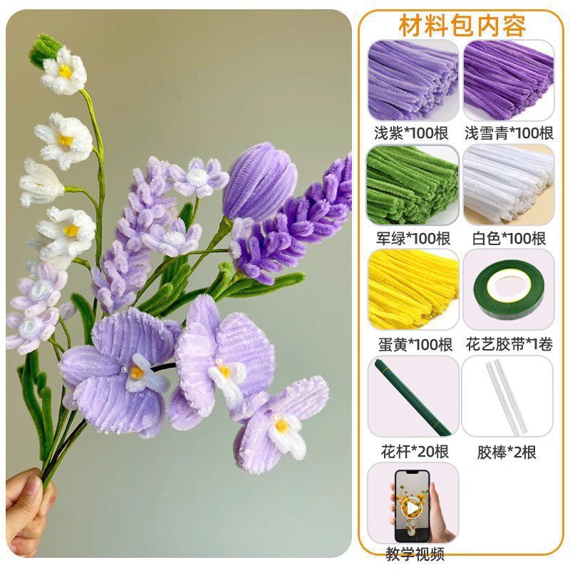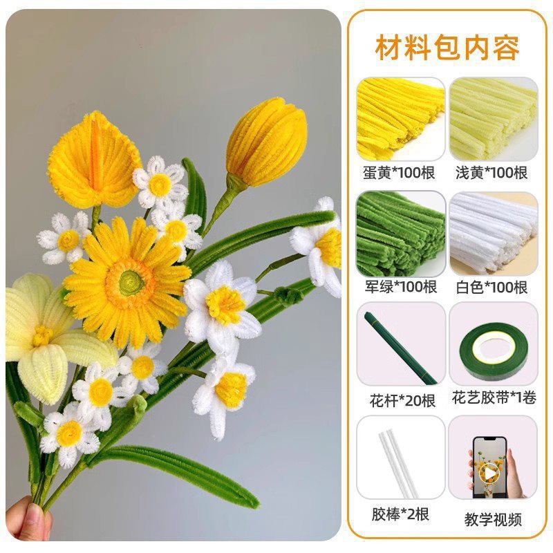 트위스트 스틱 녹색 수제 꽃다발 재료 패키지 해바라기 트위스트 스틱 암호화 플러시 뿌리 트위스트 스틱스토어 가기