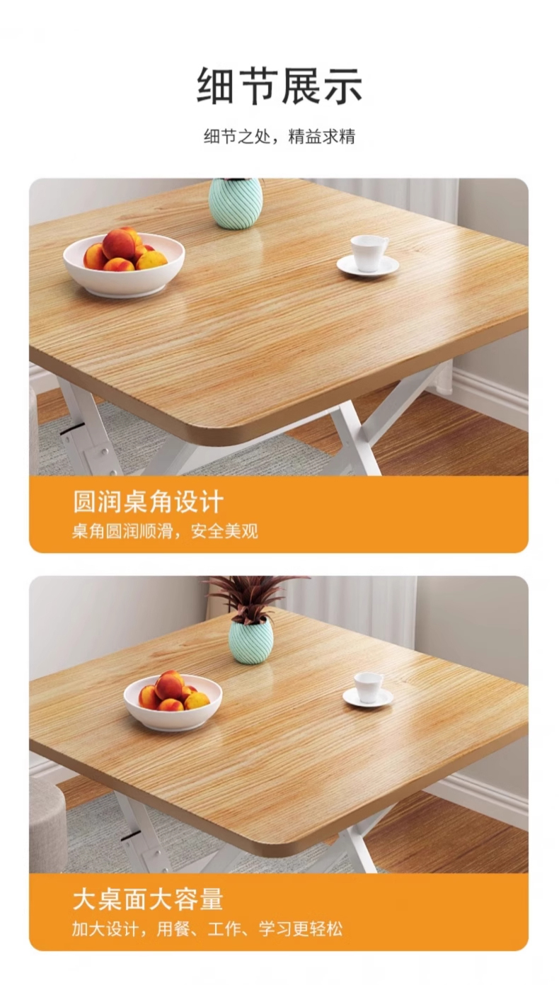 접이식 테이블 간단한 임대 주택 휴대용 소형 식탁 가정용 사각형 식탁 야외 스톨 사각형 테이블