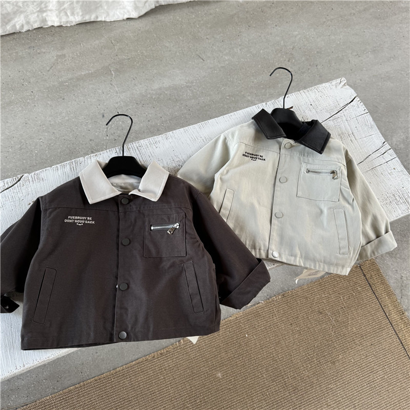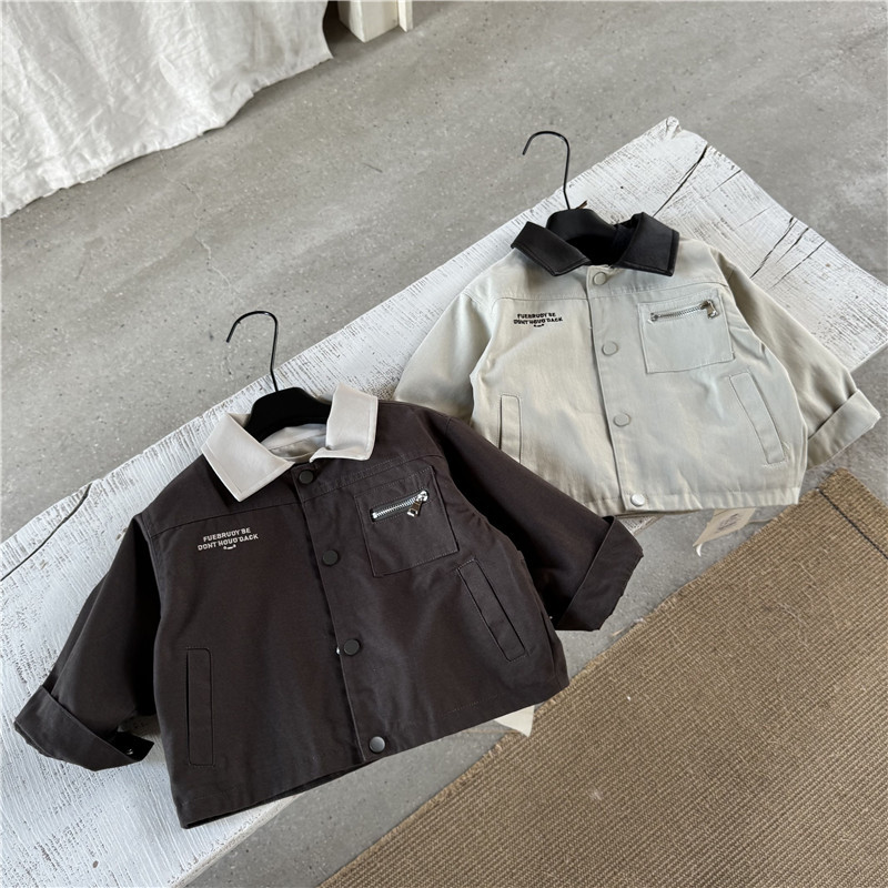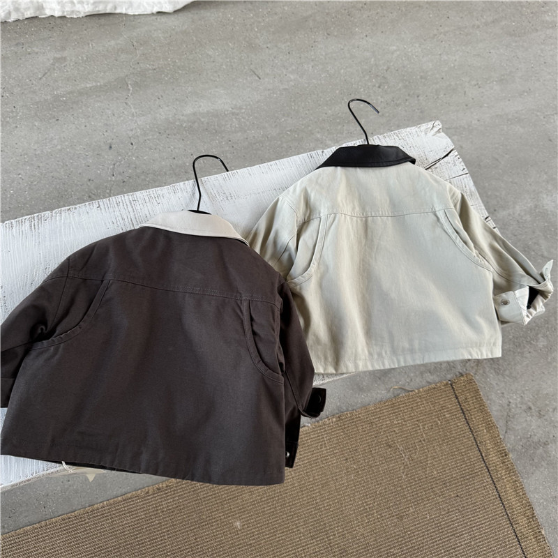 아동 가을 신작 남아 재킷 2025 한국 스타일 외국 스타일 남아 여아 한국식 가죽 칼라 가디건 재킷스토어 가기