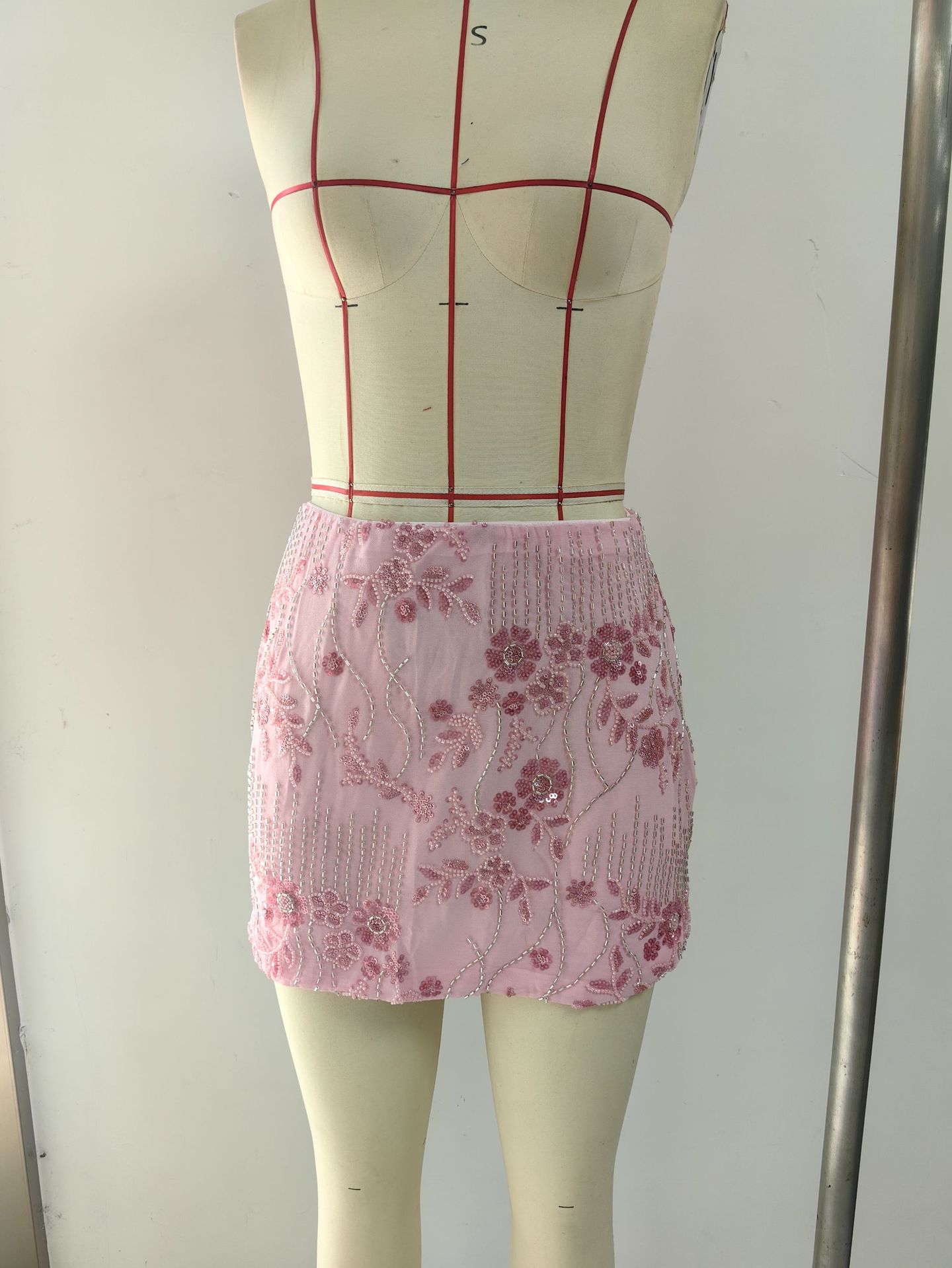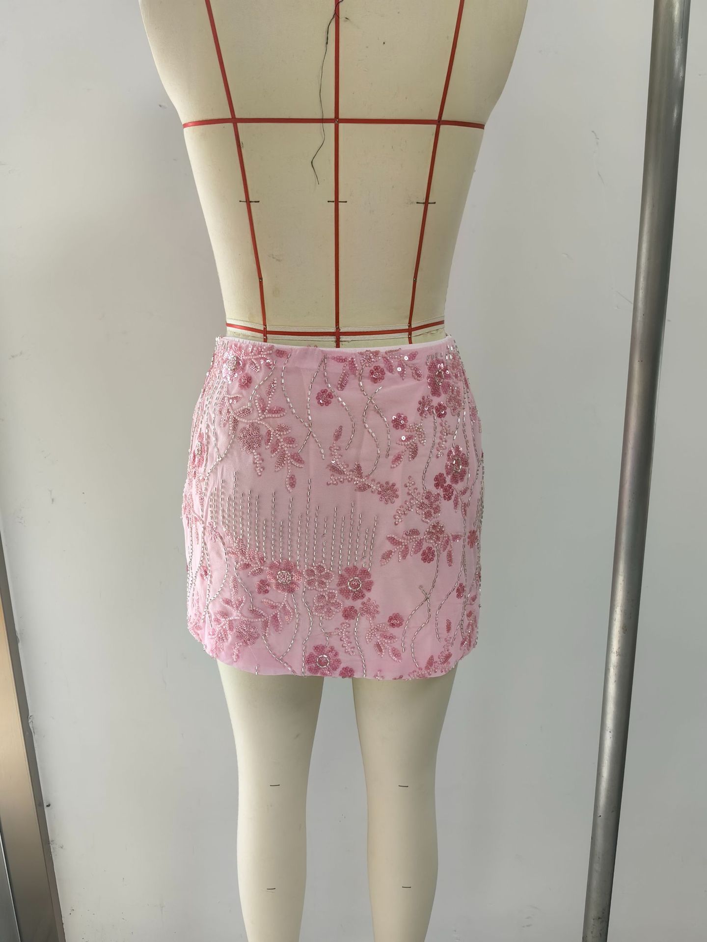 2025 유럽과 미국의 국경 간 아마존 섹시한 뜨거운 소녀 엉덩이 커버 스커트 여성 Y2K 구슬 장식 꽃 미니 스커트스토어 가기
