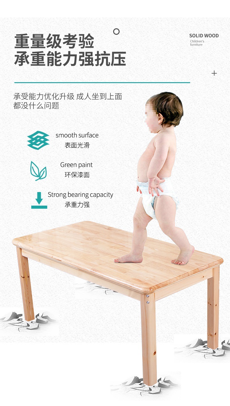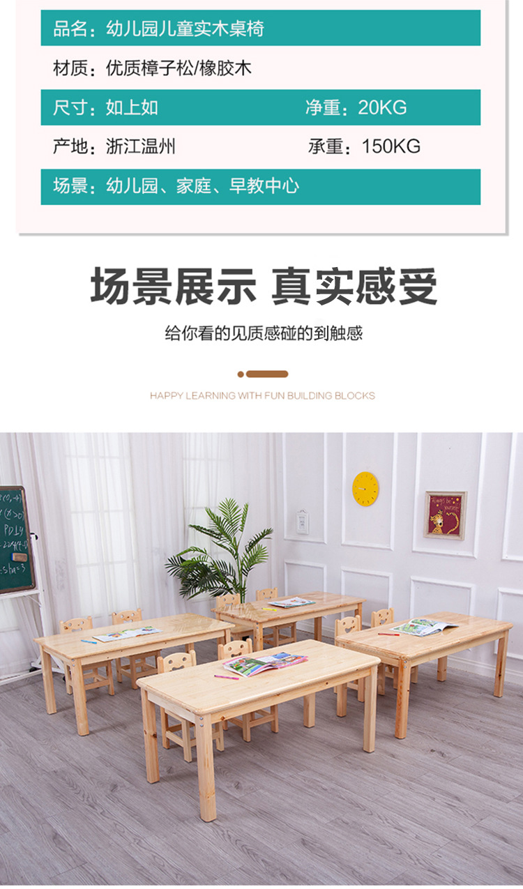 유치원 단단한 나무 테이블 어린이 테이블과 의자 세트 아기 그림 장난감 테이블 직사각형 교육 기관 학습 L &스토어 가기
