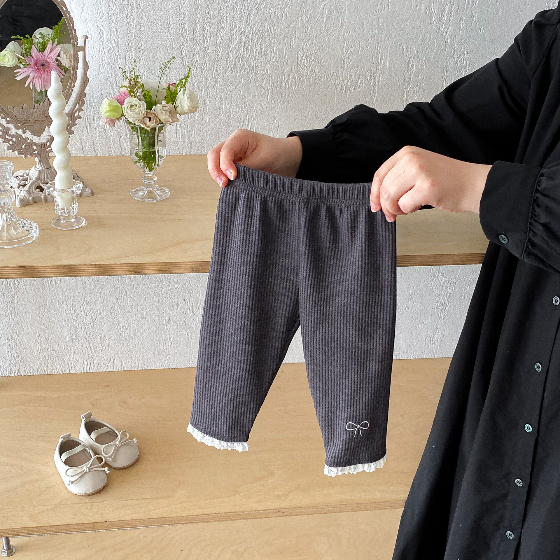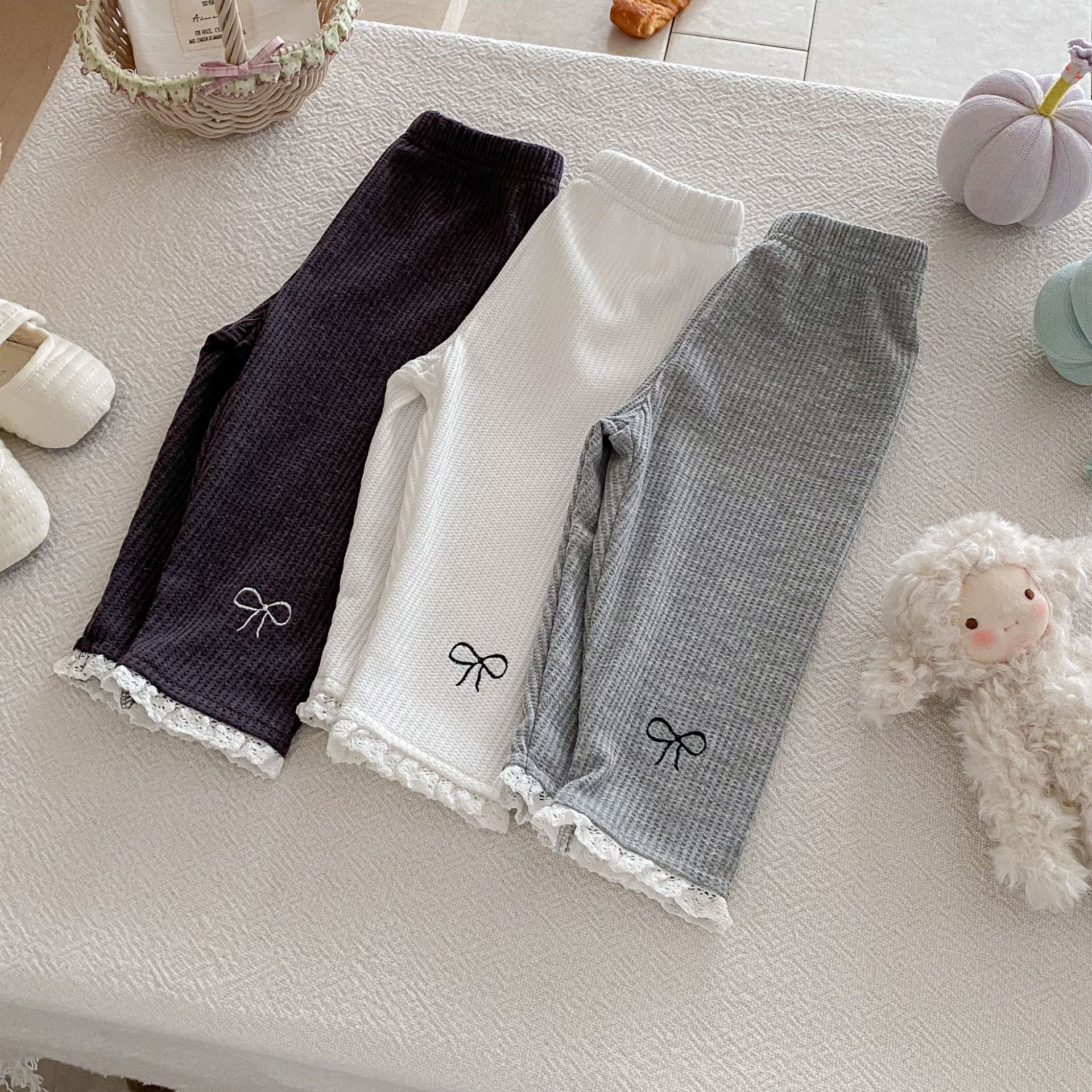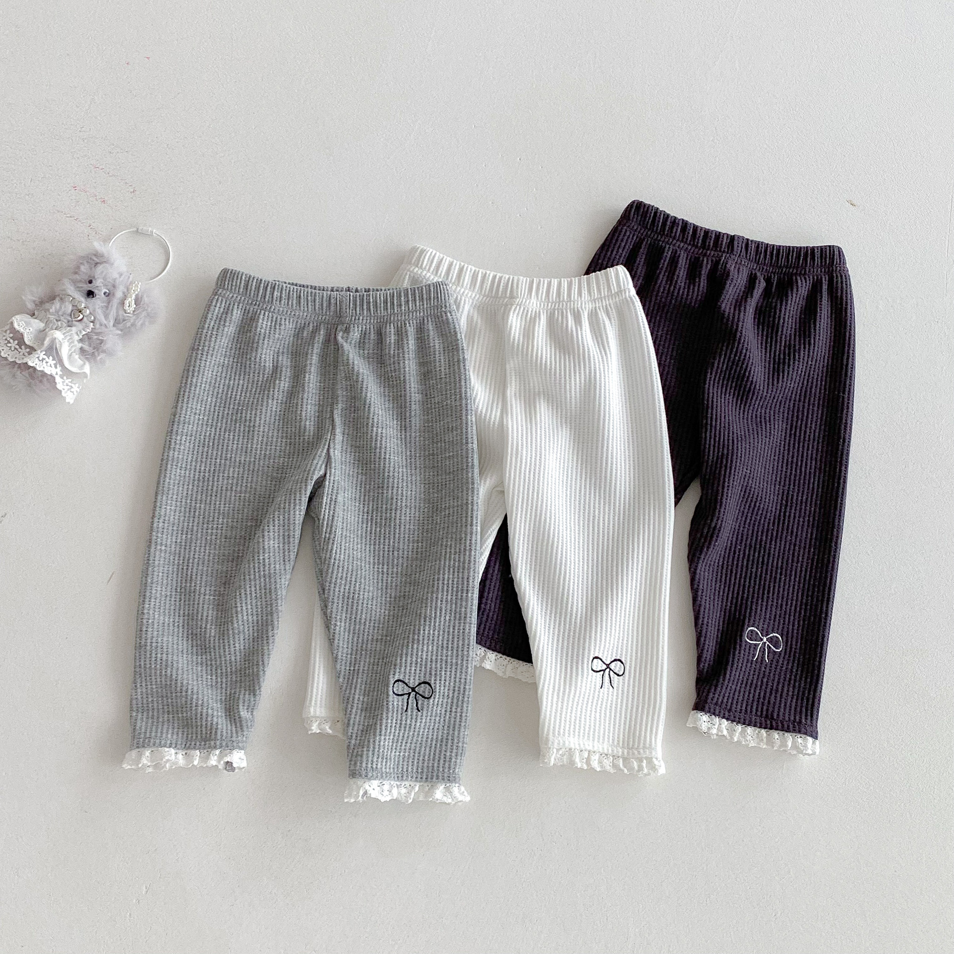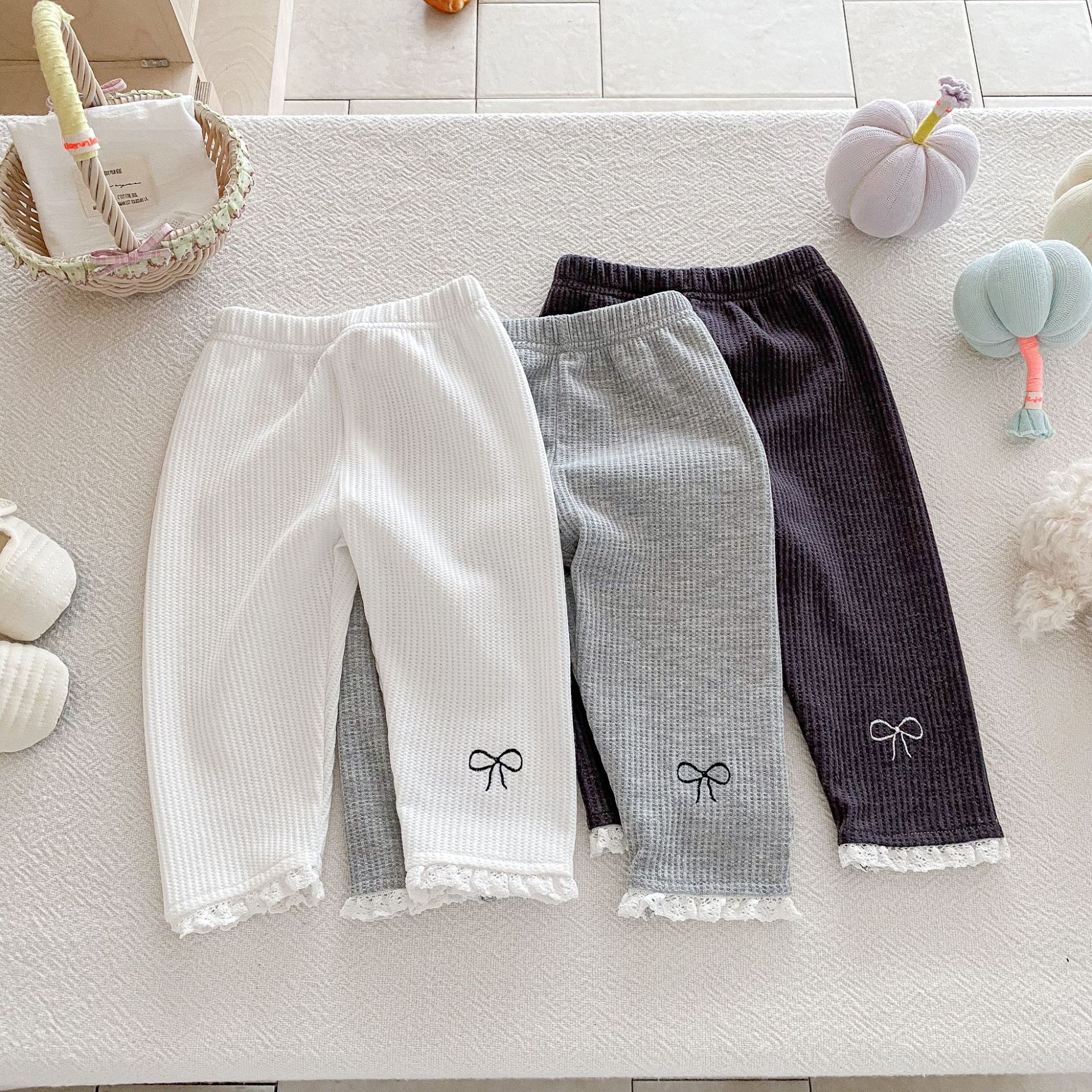 Ins 한국어 버전 2025 새로운 가을 스타일 유아 레깅스 아기 소녀 절묘한 자수 레이스 긴 바지스토어 가기