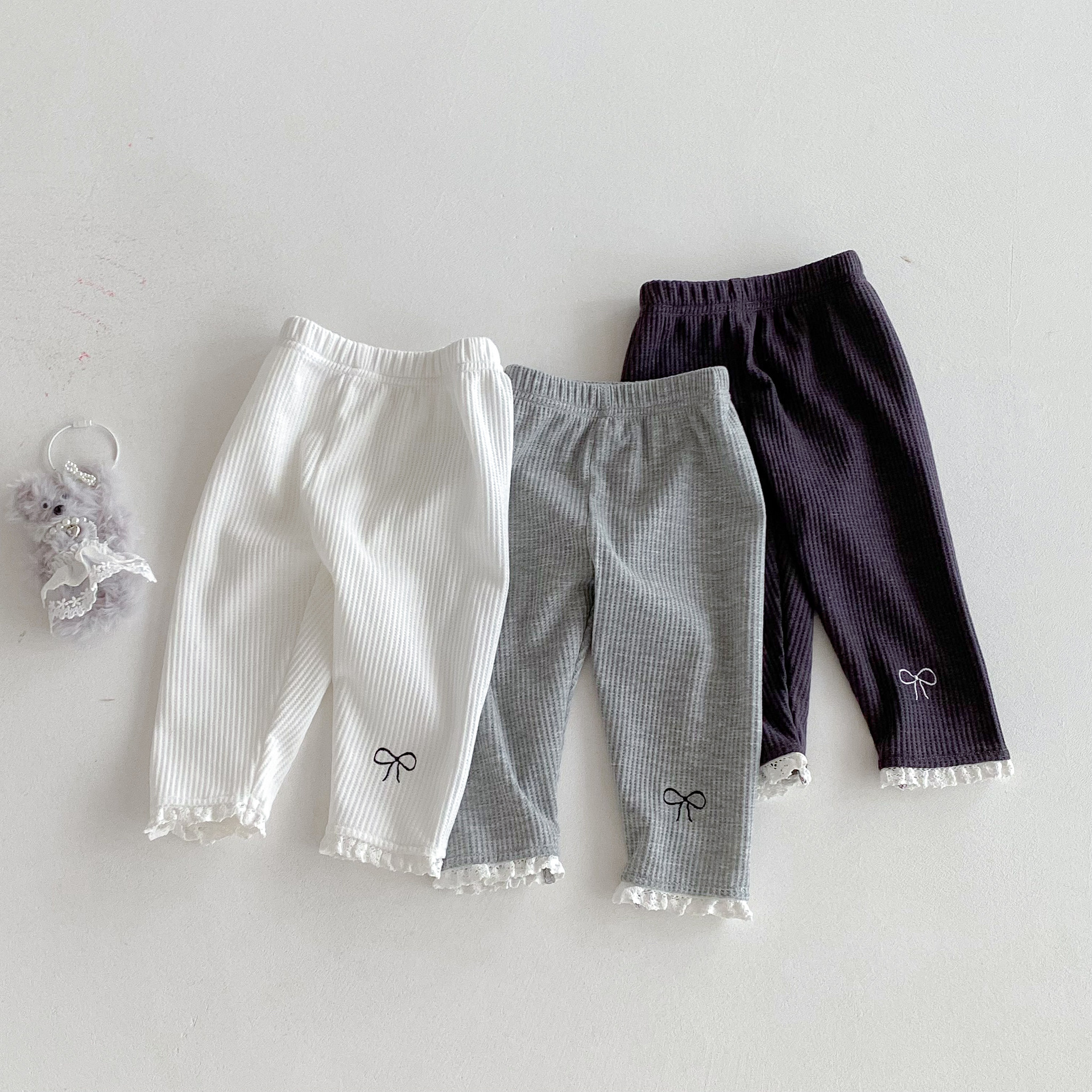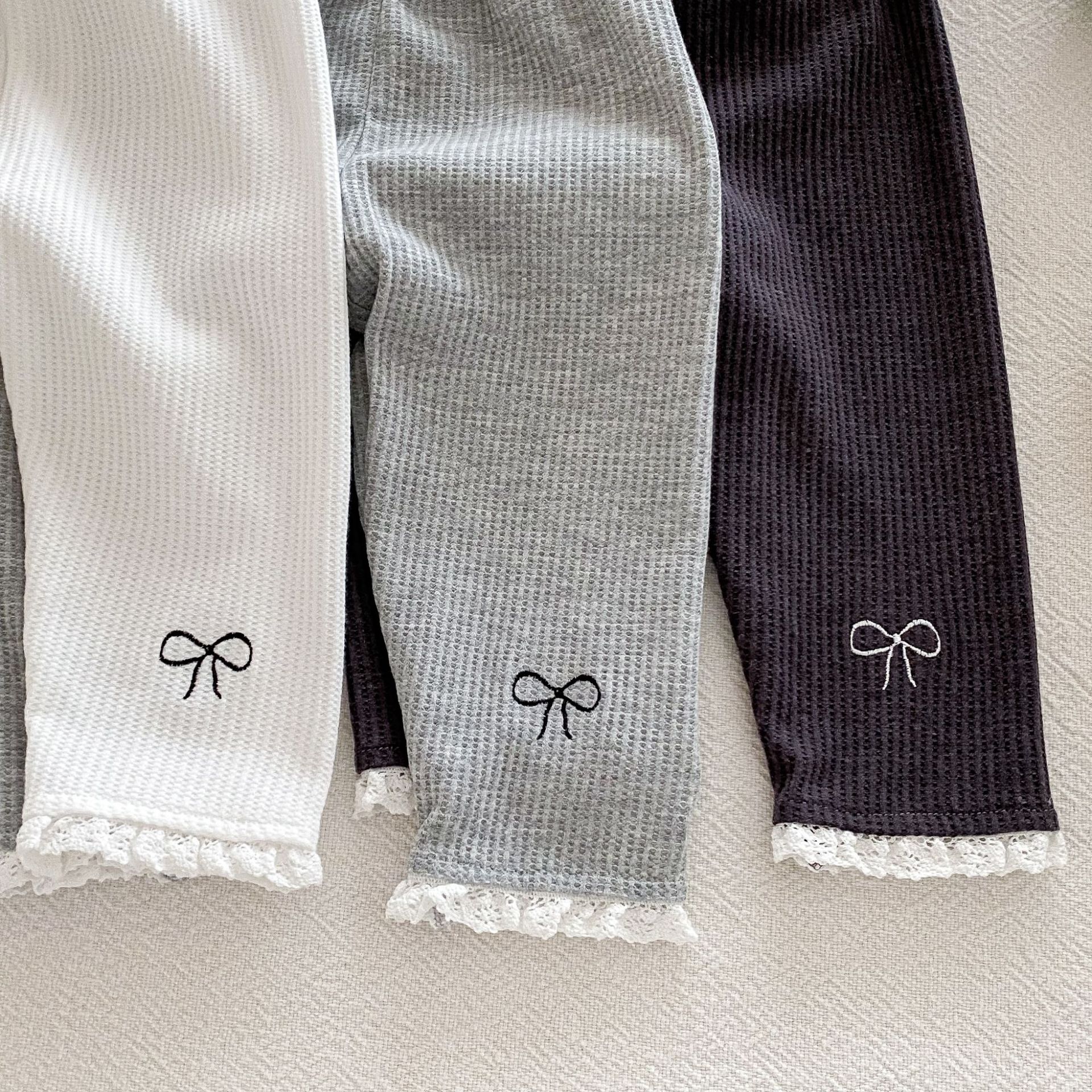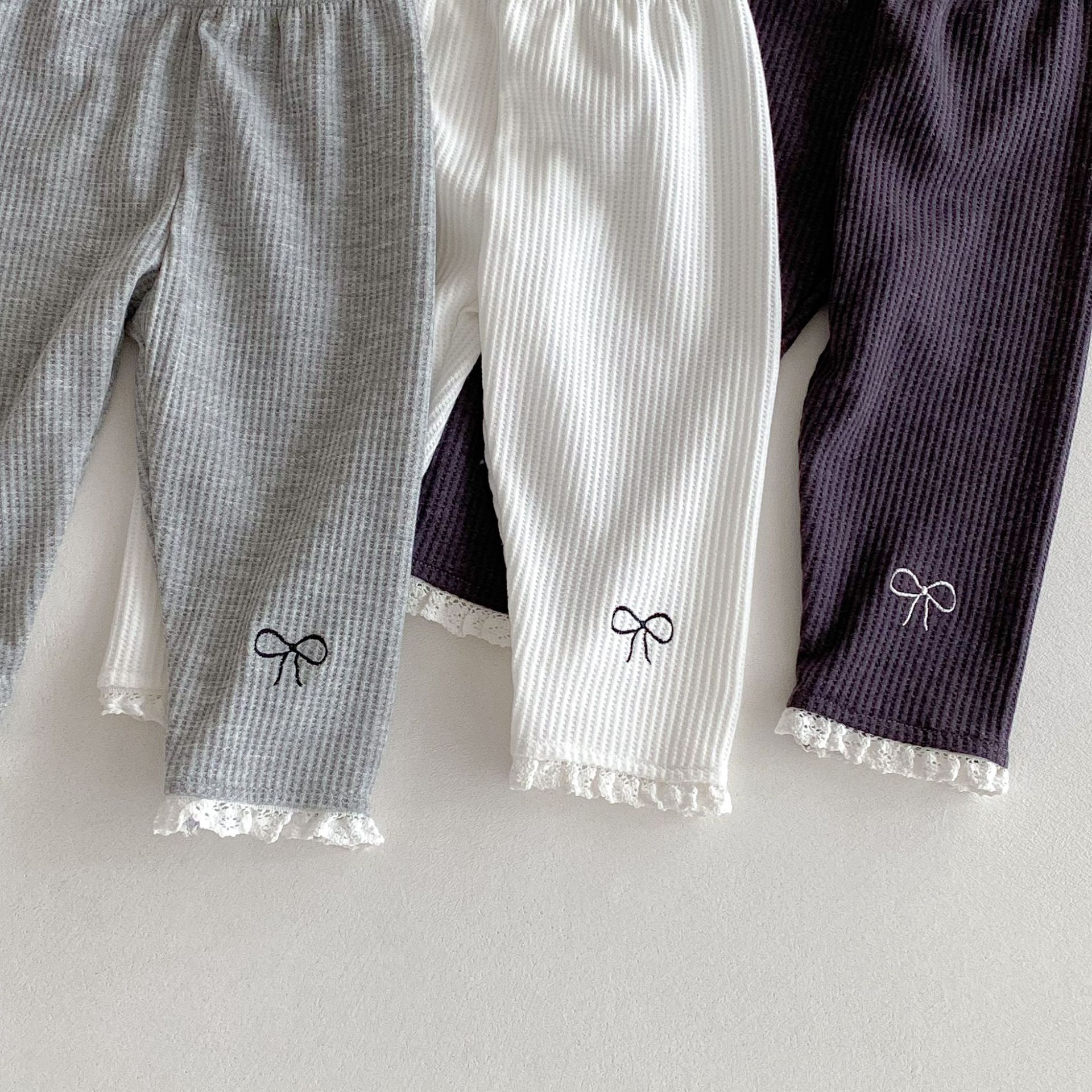 Ins 한국어 버전 2025 새로운 가을 스타일 유아 레깅스 아기 소녀 절묘한 자수 레이스 긴 바지