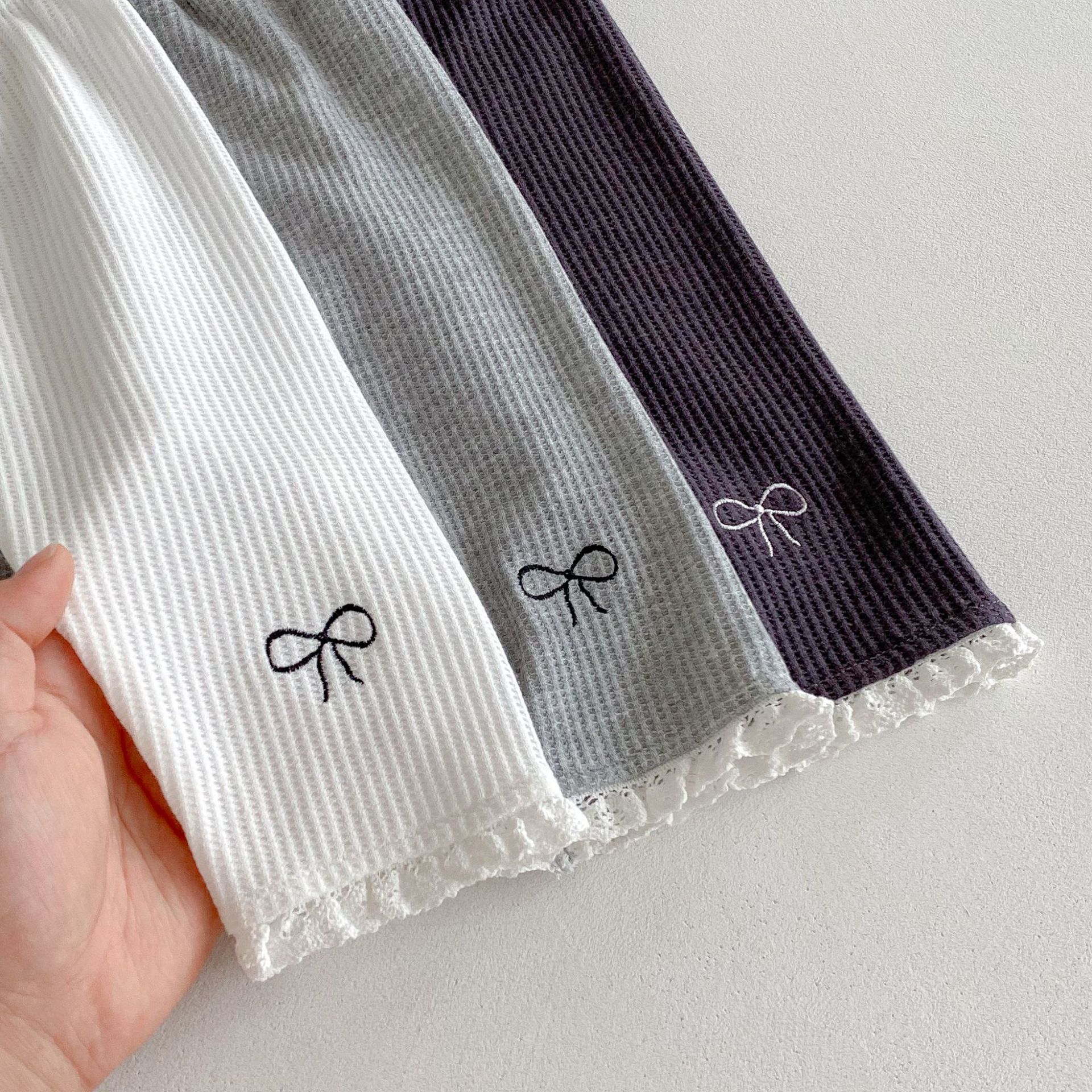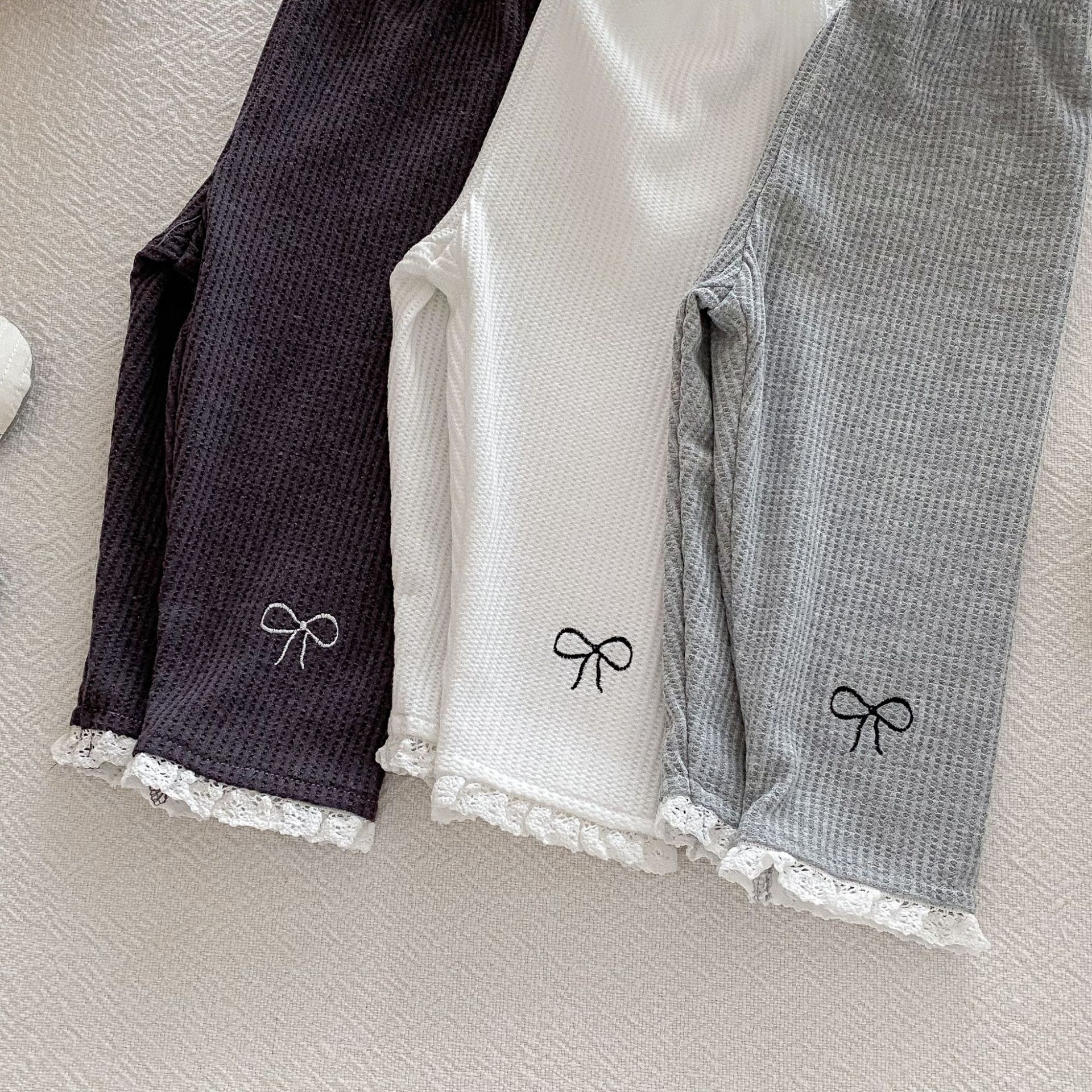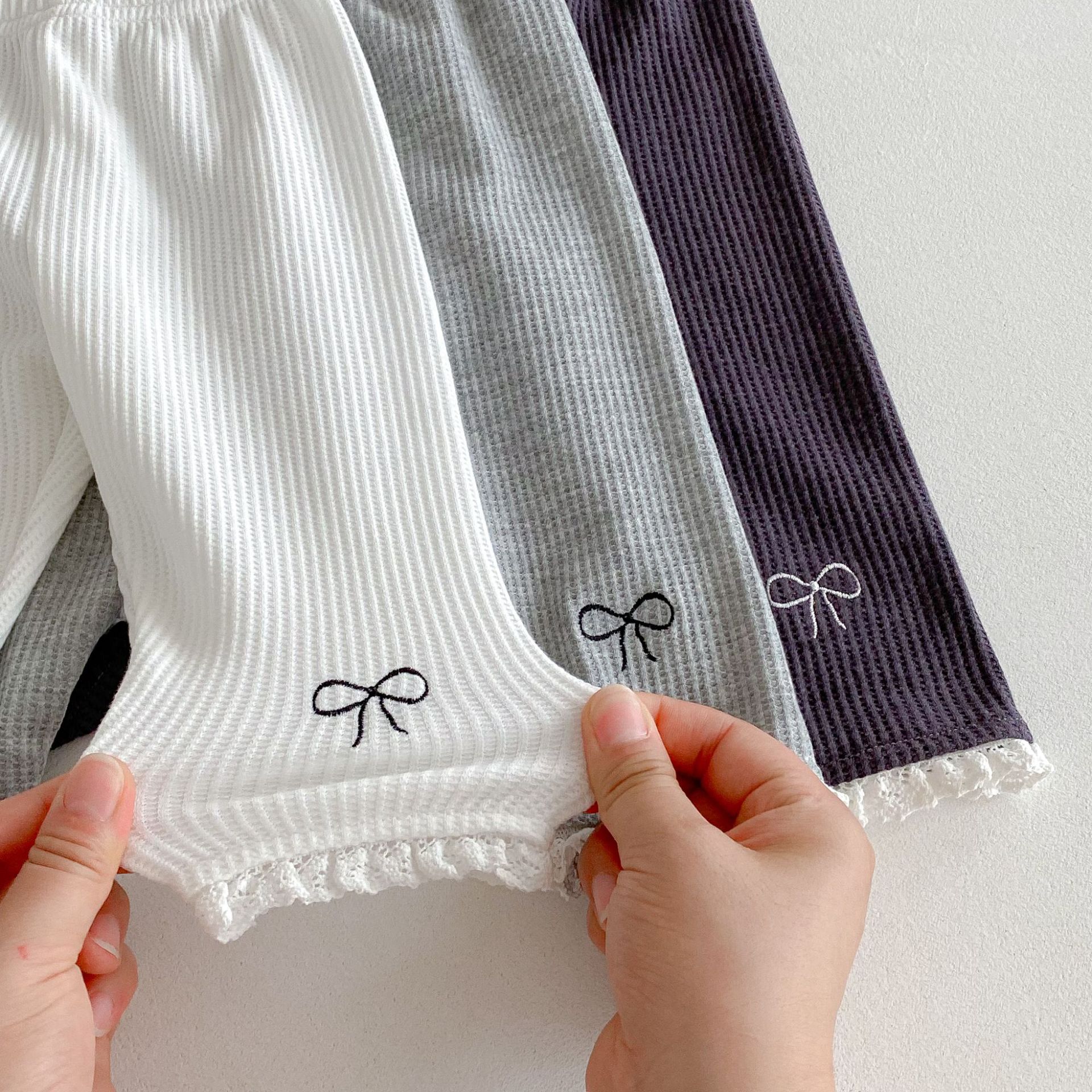 Ins 한국어 버전 2025 새로운 가을 스타일 유아 레깅스 아기 소녀 절묘한 자수 레이스 긴 바지