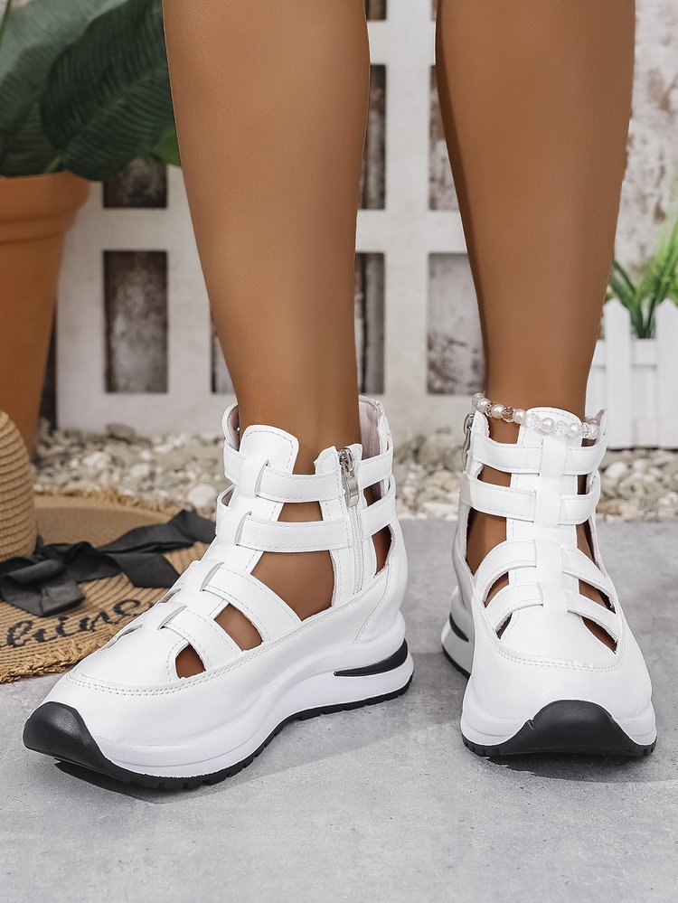 2025년 신상 여름 대외 무역 대형 두꺼운 밑창 발가락 뒤쪽이 빈 와이드 스트랩 샌들 높이 증가 캐주얼 스타일 여성 신발 Temu