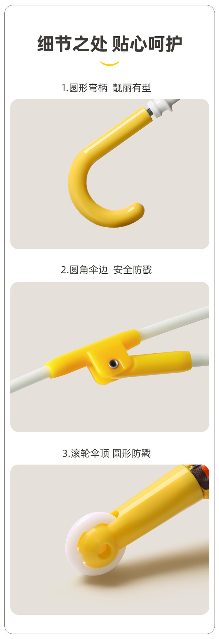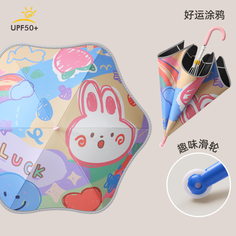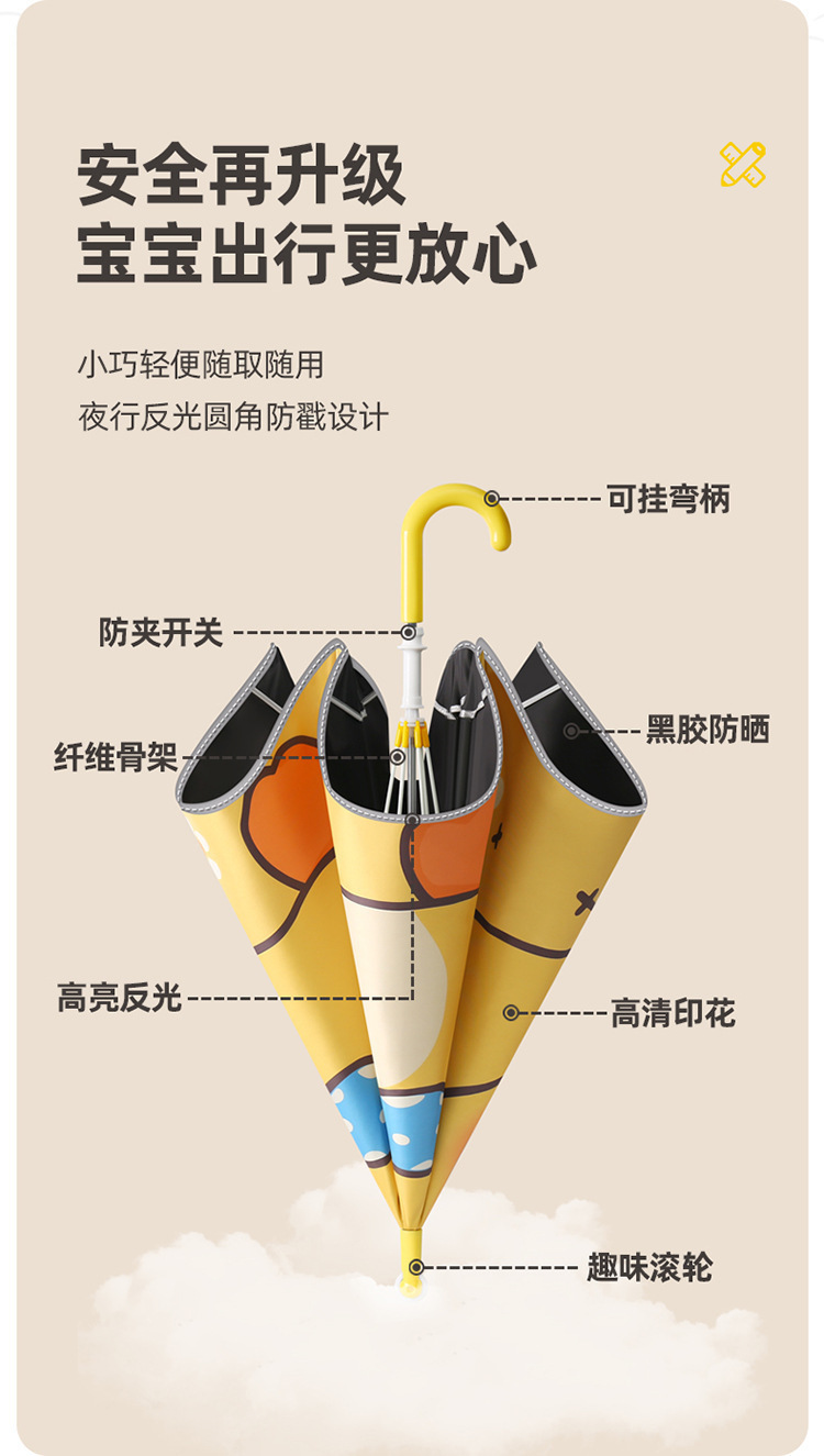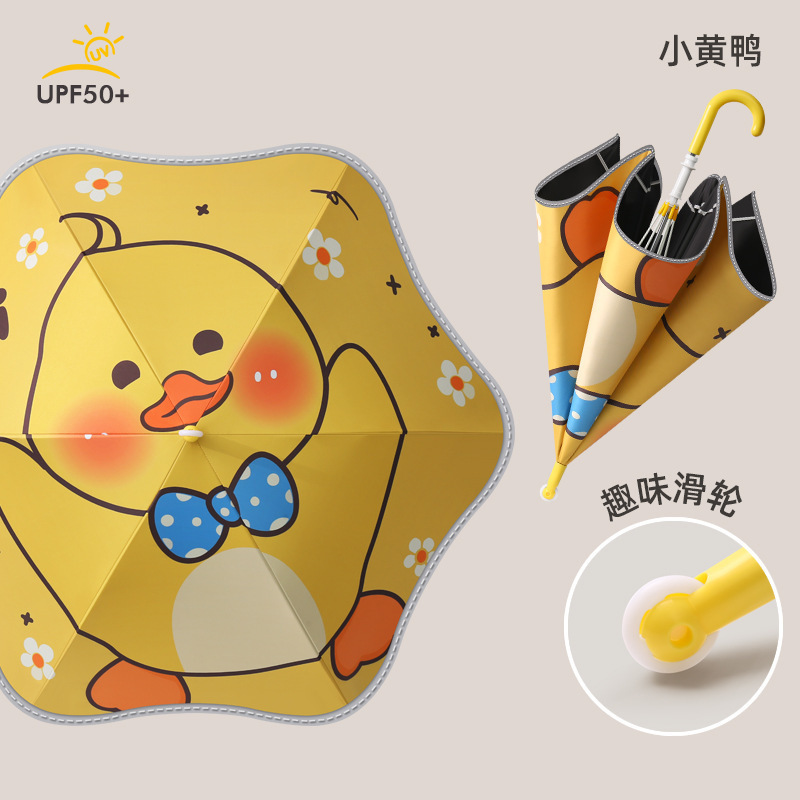 학생 어린이용 둥근 모서리 안전 자외선 차단 긴 손잡이 우산, 학교용, 여아 남아용, 비 오는 날과 맑은 날 모두 사용 가능 우산스토어 가기