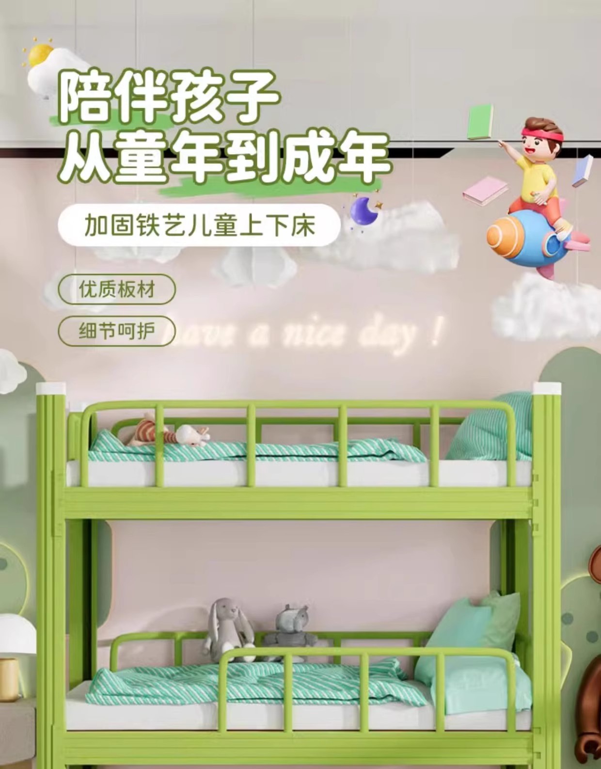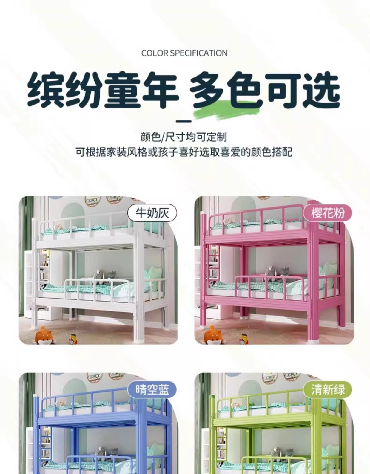 上下铺加厚儿童床幼儿园午休床全围栏双层床小学生床托班专用铁架