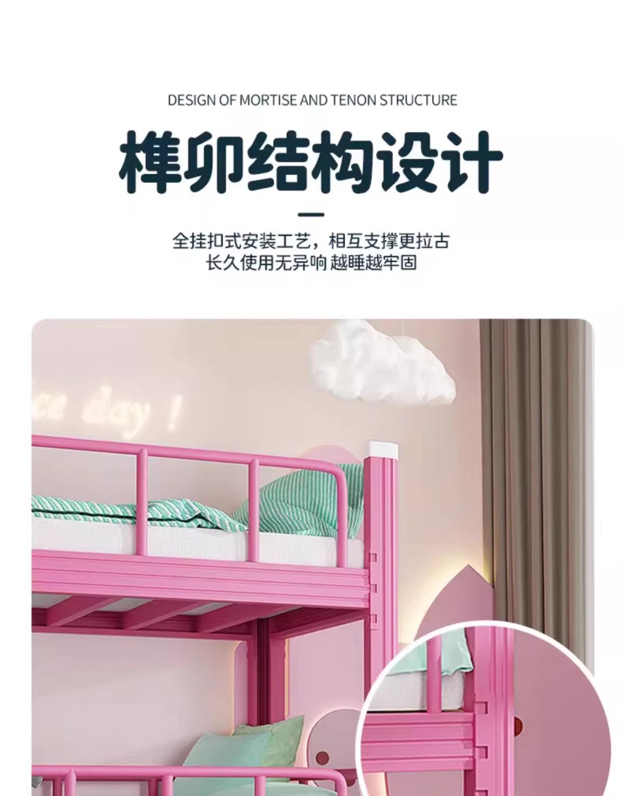 • 길이 1700*가로 800*높이 1500 핑크 [침대판 포함]