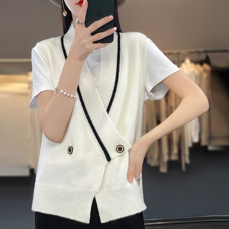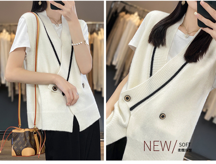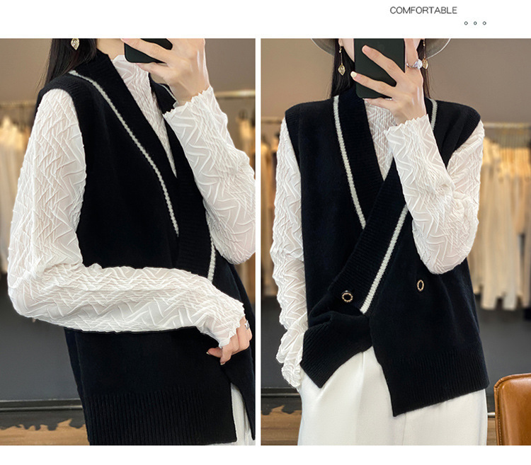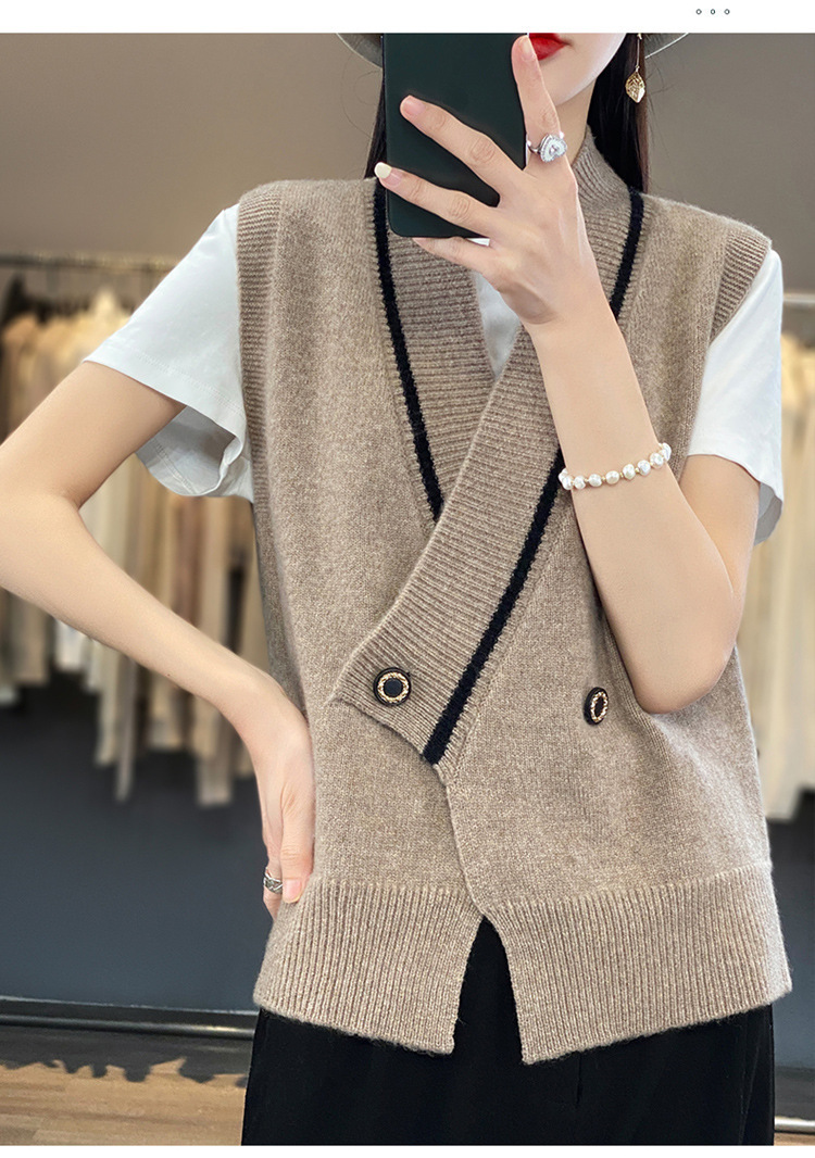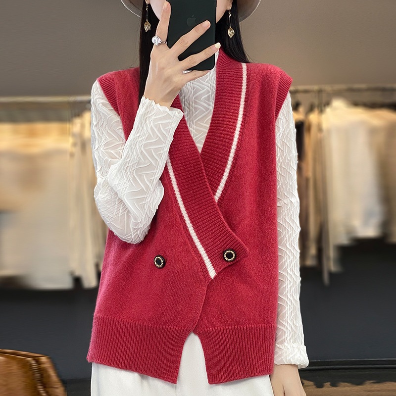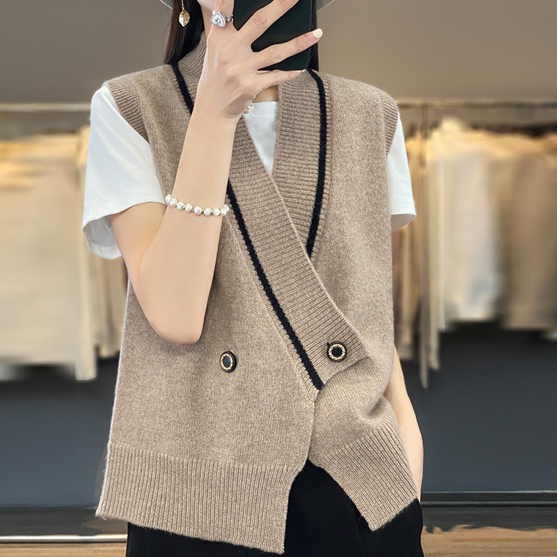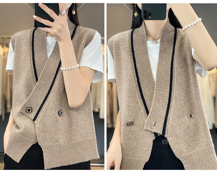 여성용 조끼 니트 조끼 봄, 가을 2025 새로운 v 넥 느슨한 게으른 스웨터 여성용 겉옷을위한 세련된 레이어드 탑스토어 가기